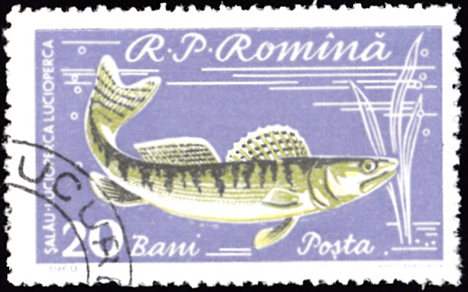 Auf dieser Marke aus Rumänien (MiNr 1928) sehen wir einen Zander (Lucioperca lucioperca).