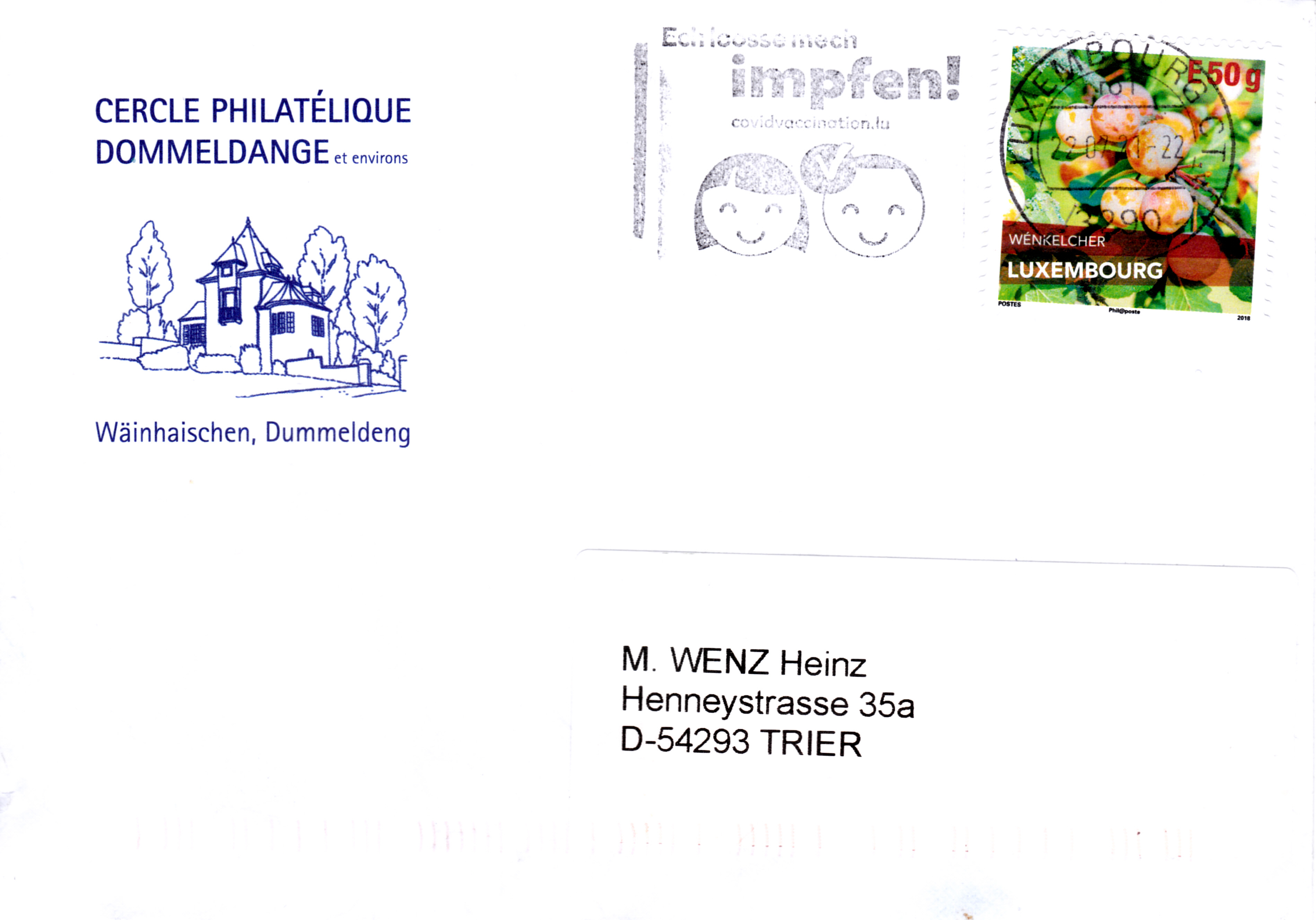 Die Marke wurde auf diesem Brief von Luxemburg nach Trier portogerecht verwendet.