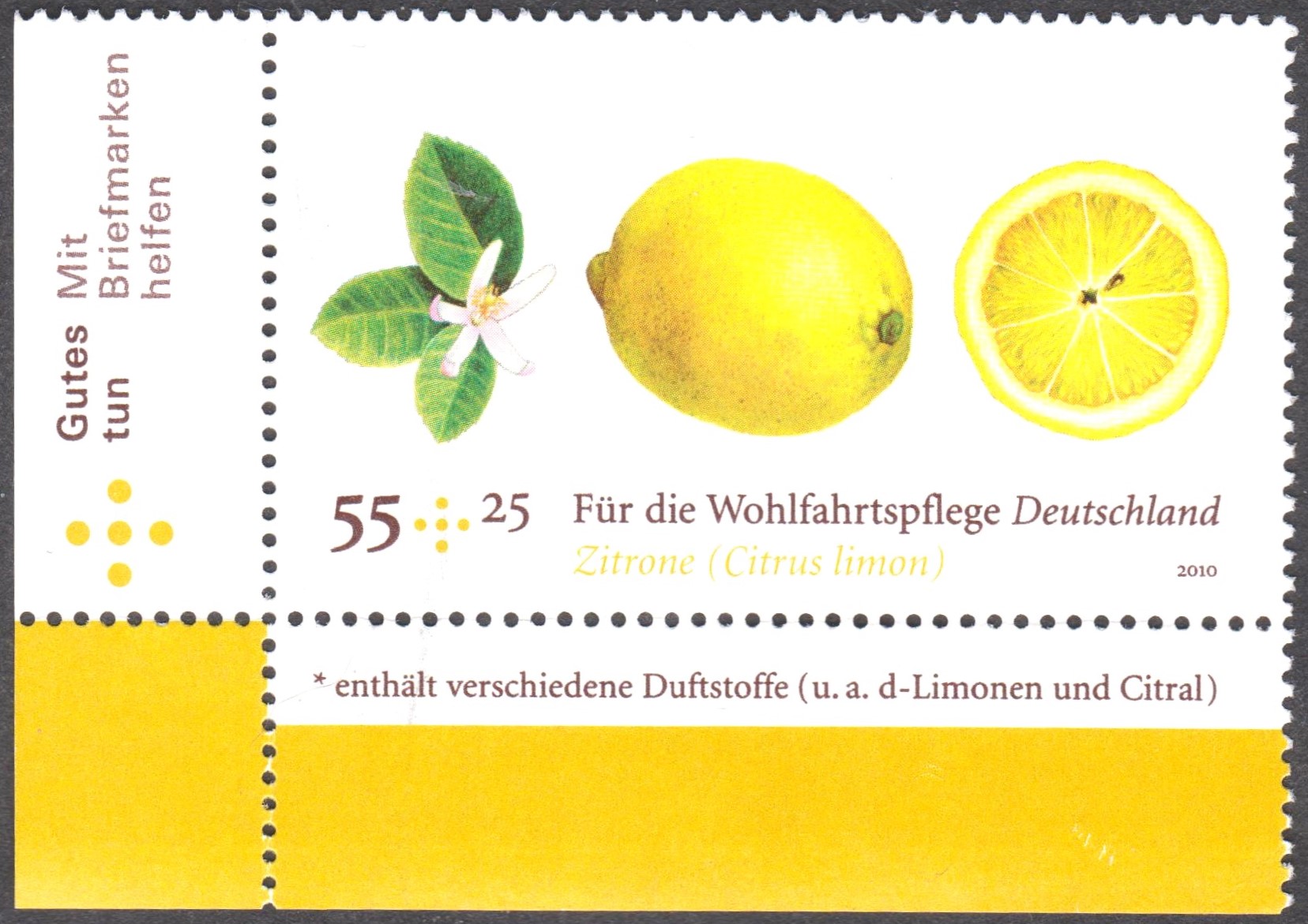 Dieses Postwertzeichen der Deutschen Post, MiNr. 2771, zeigt eine Blüte, eine ganze und eine halbierte Zitrone.