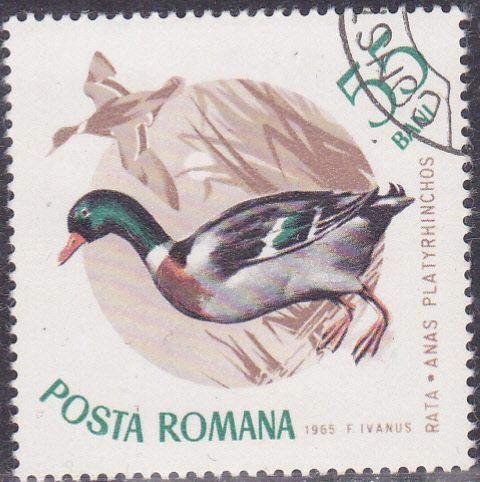 In der gleichen Serie aus Rumänien gibt es auch diese Marke (MiNr 2434) mit einer Stockente (Anas platyrhynchos) und ihr Flugbild.