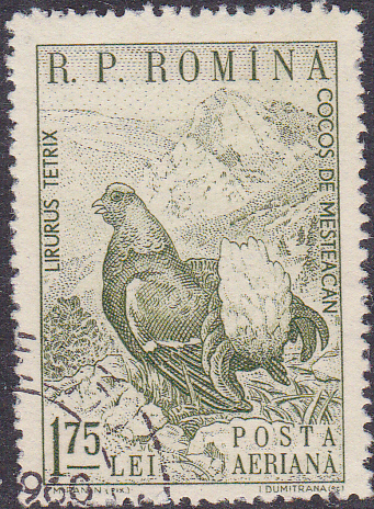 In Rumänien erschien 1960 diese Marke (MiNr 1837) mit Birkhuhn (Tetrao tetrix).