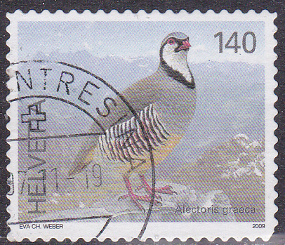 Aus der Schweiz kommt diese Marke (MiNr 2099) mit einem Steinhuhn (Alectoris graeca).