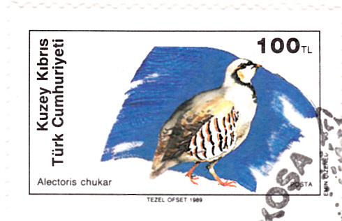 Diese Marke aus Türkisch-Zypern (MiNr 252) zeigt ein Chukarhuhn (Alectoris chukar).