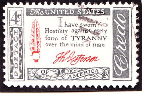 Am 18.5.1960 erschien in der Serie " Amerikanisches Credo mit Aussprüchen berühmter Amerikaner" auch eine Marke (MiNr 768) mit einem Ausspruch von Thomas Jefferson: "Ich habe Feindseligkeit gegen jede Form von Tyrannei über den menschlichen Geist geschworen."