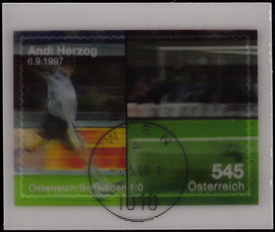Als erstes Beispiel eine Marke zum Thema Fussball, die zwei Spielszenen zeigt.