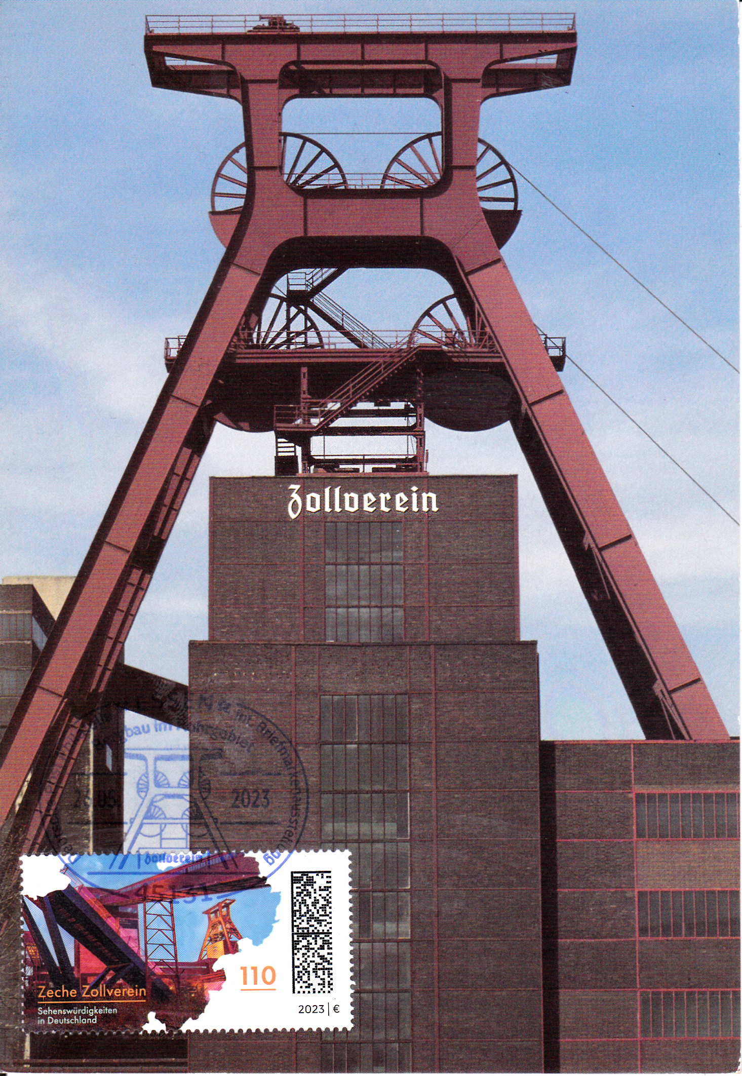 Maximumkarte mit der Marke (MiNr 3739) mit der Zeche Zollverein und einem zum Motiv passenden Sonderstempel zur IBRA 2023 in Essen vom 26.05.2023.