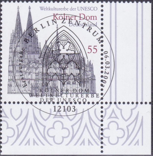 Diese Marke aus der Serie "UNESCO-Welterbe" der Deutschen Post (MiNr 2329) zeigt den Kölner Dom. Hier zeige ich eine Marke vom linken unteren Eckrand.