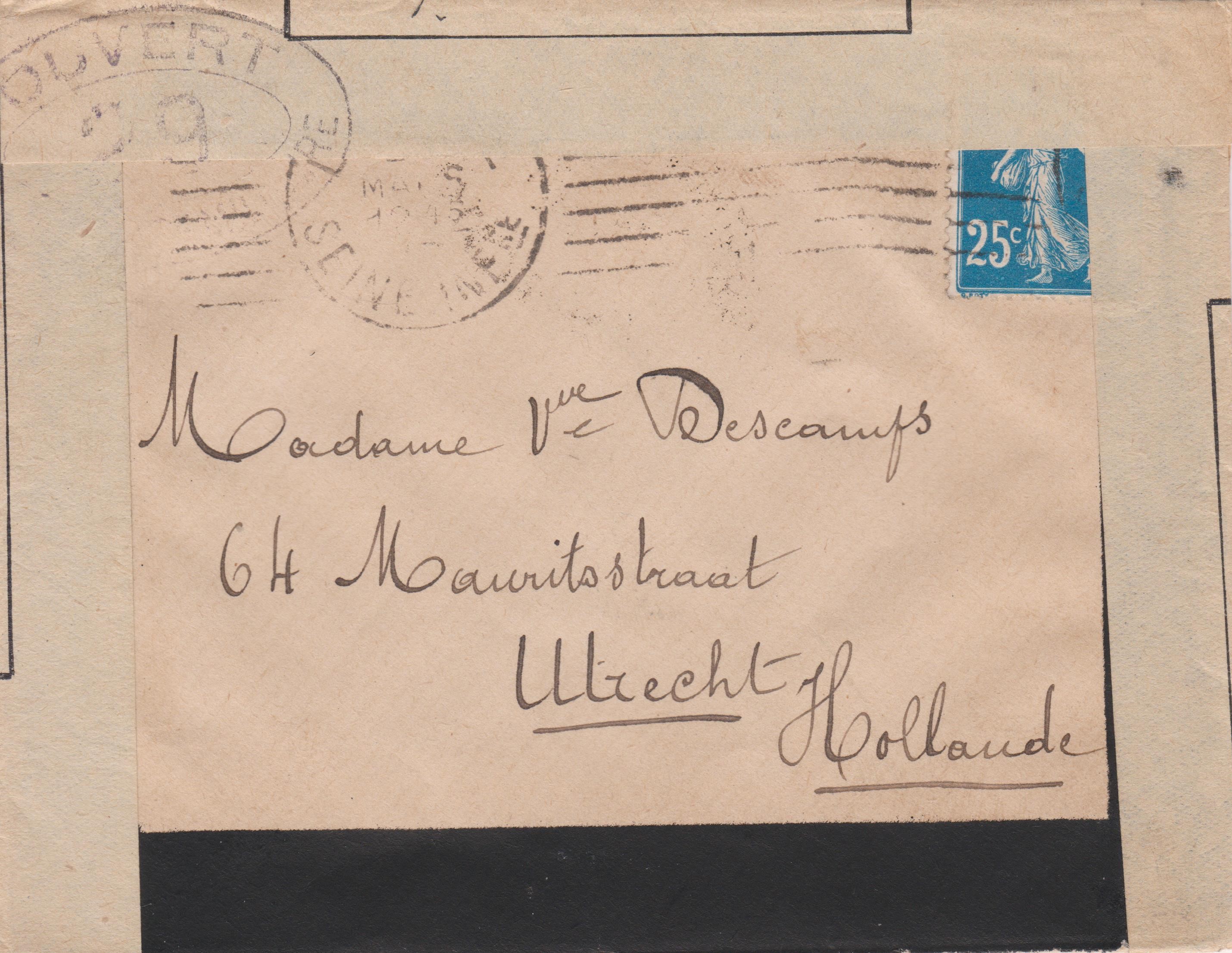 Trauerbrief aus Frankreich nach Utrecht in Holland: