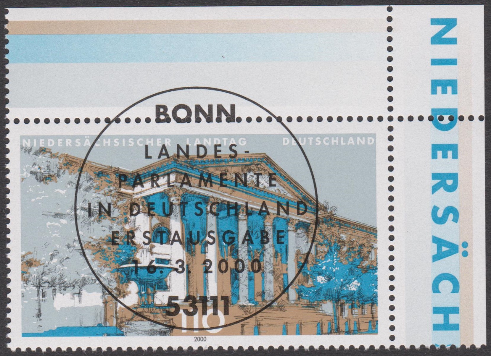 Niedersächsischer Landtag, Bund MiNr. 2104, rechte obere Bogenecke mit ESST BONN: