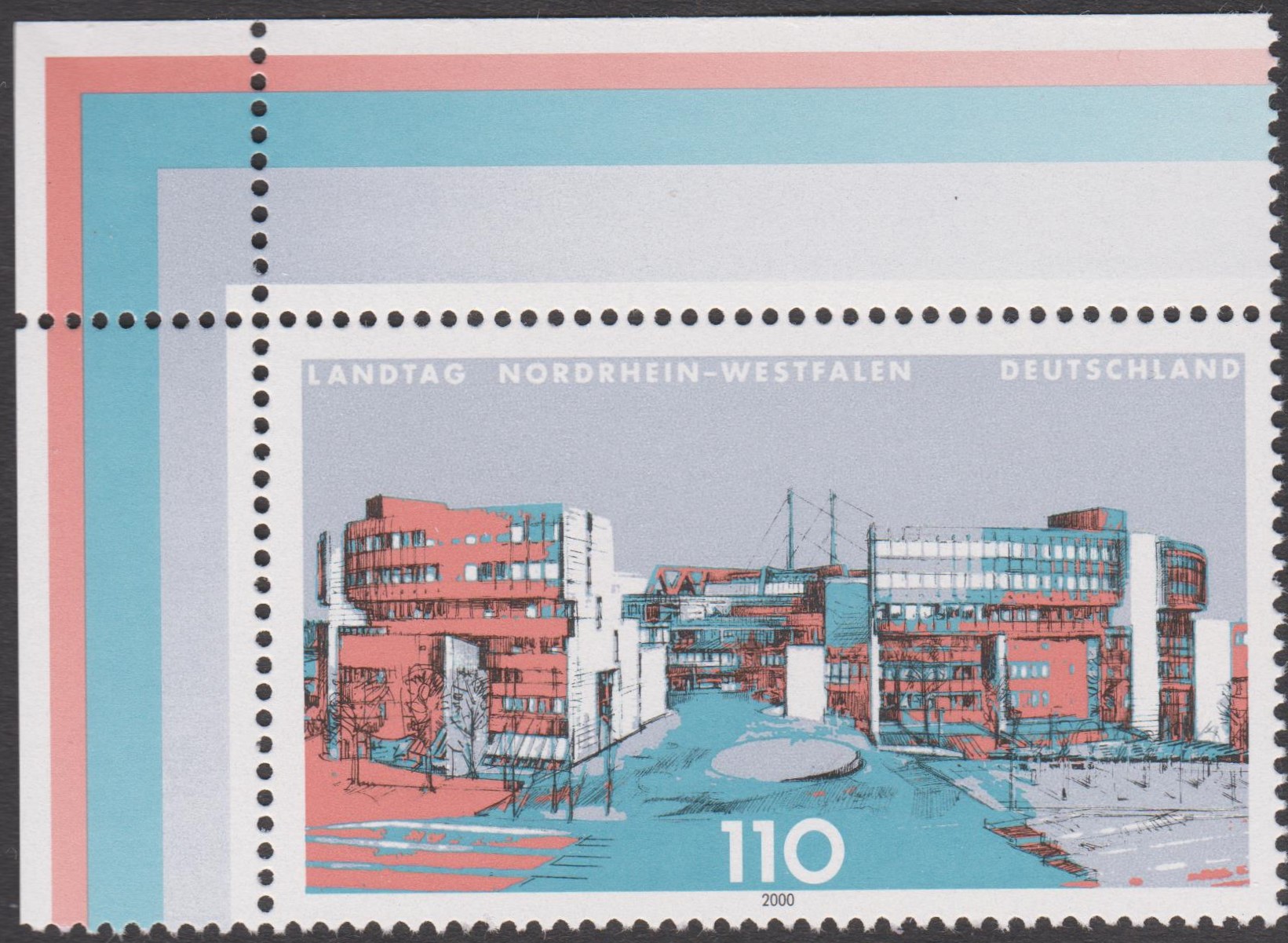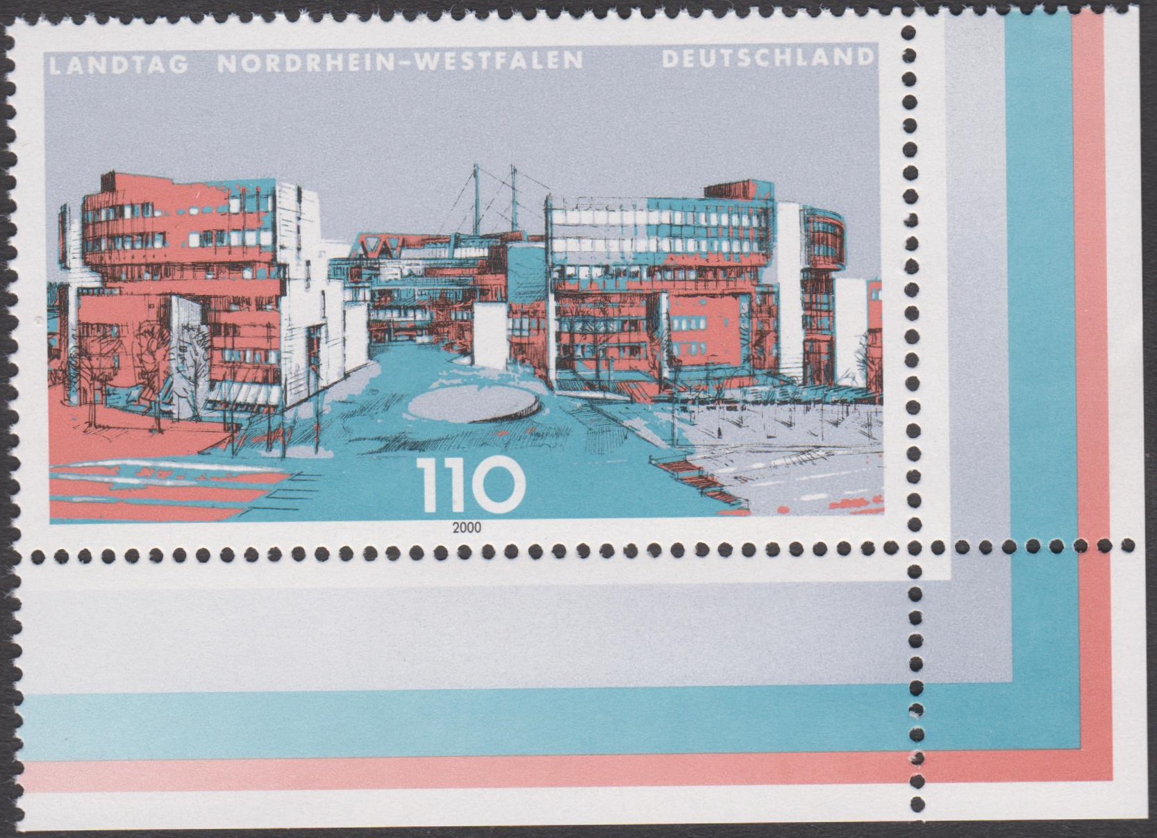 BUND MiNr. 2110 zeigt das Landtagsgebäude Nordrhein-Westfalen, Feld 1 sowie Feld 10 postfrisch: