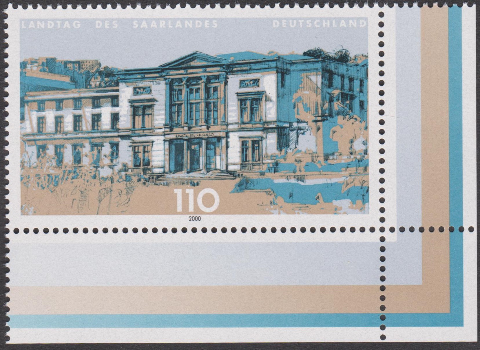 Bund MiNr. 2153, LANDTAG DES SAARLANDES, linke obere sowie rechte untere Ecke des Zehnerbogens postfrisch: