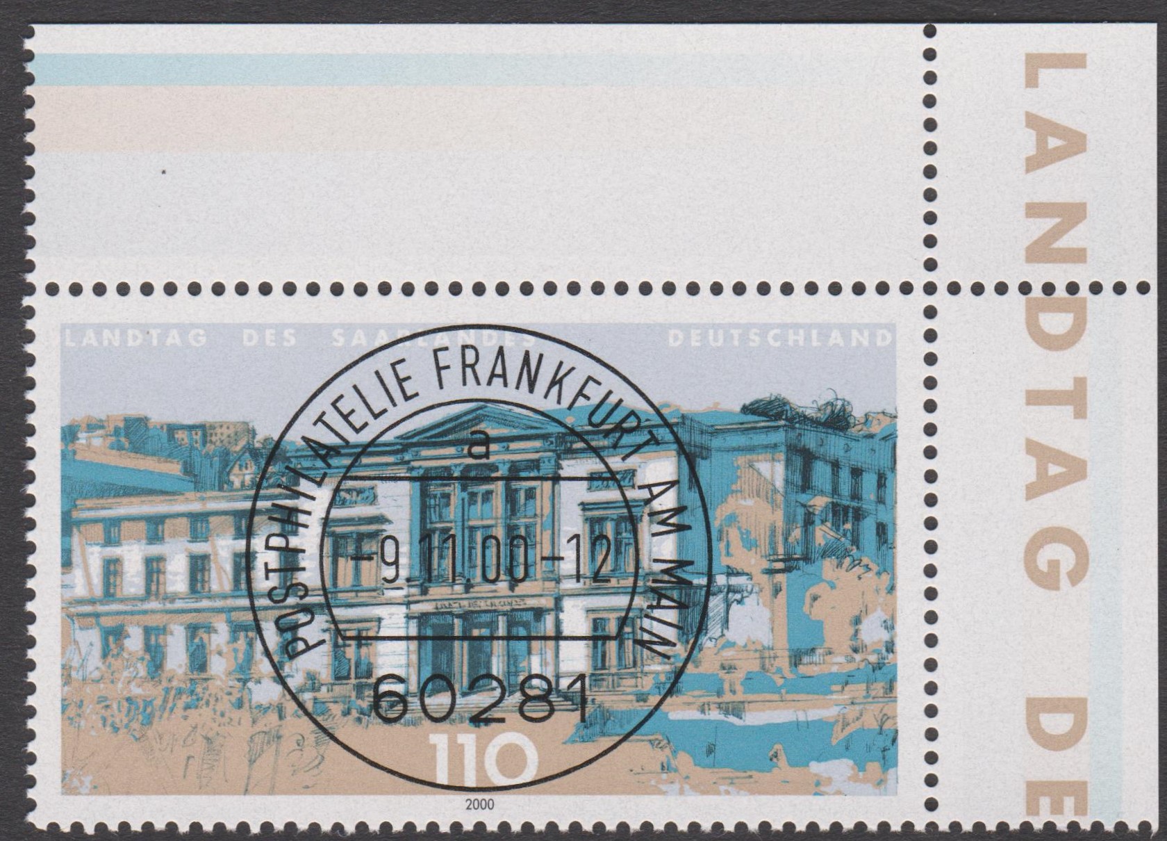 Bund MiNr. 2153, LANDTAG DES SAARLANDES, rechte obere Ecke des Zehnerbogens mit ESST BONN: