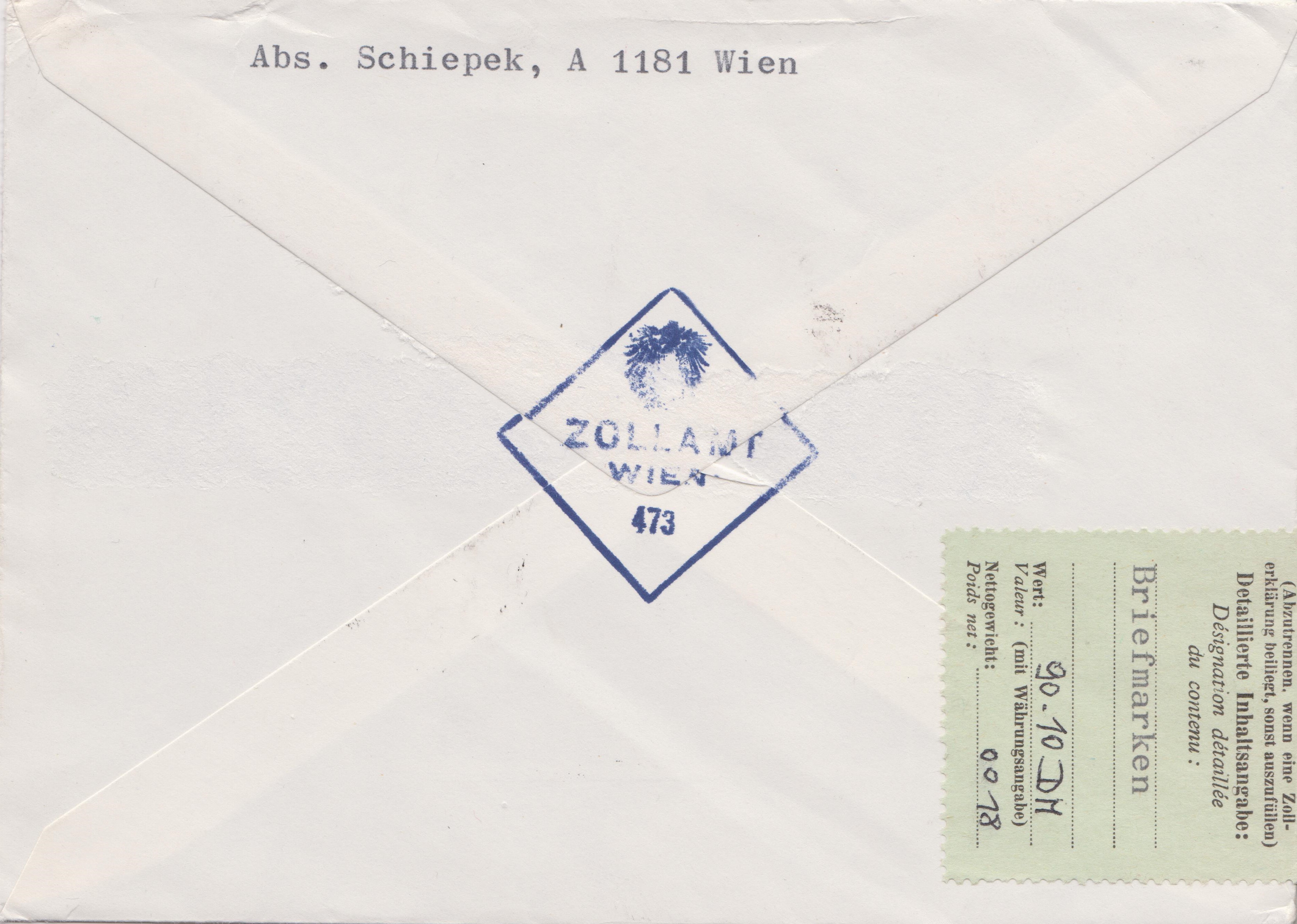 Dieser Brief wurde im ZOLLAMT WIEN rückseitig geöffnet und nach erfolgter zollamtlicher Prüfung durch den Zollbeamten mt der Nummer "473" wieder verschlossen, was ein entsprechender Stempel dokumentiert: