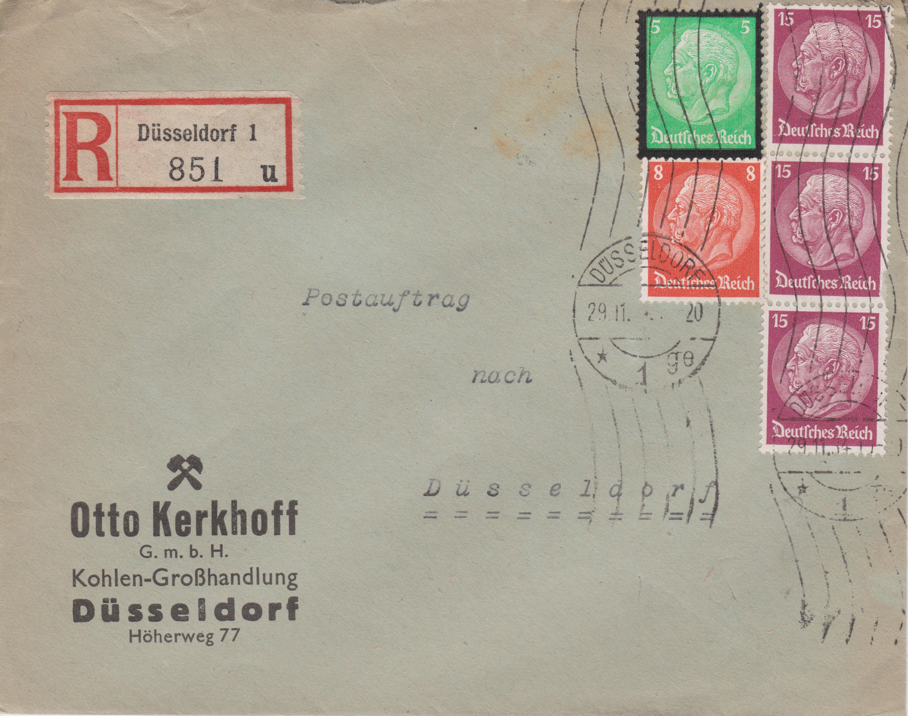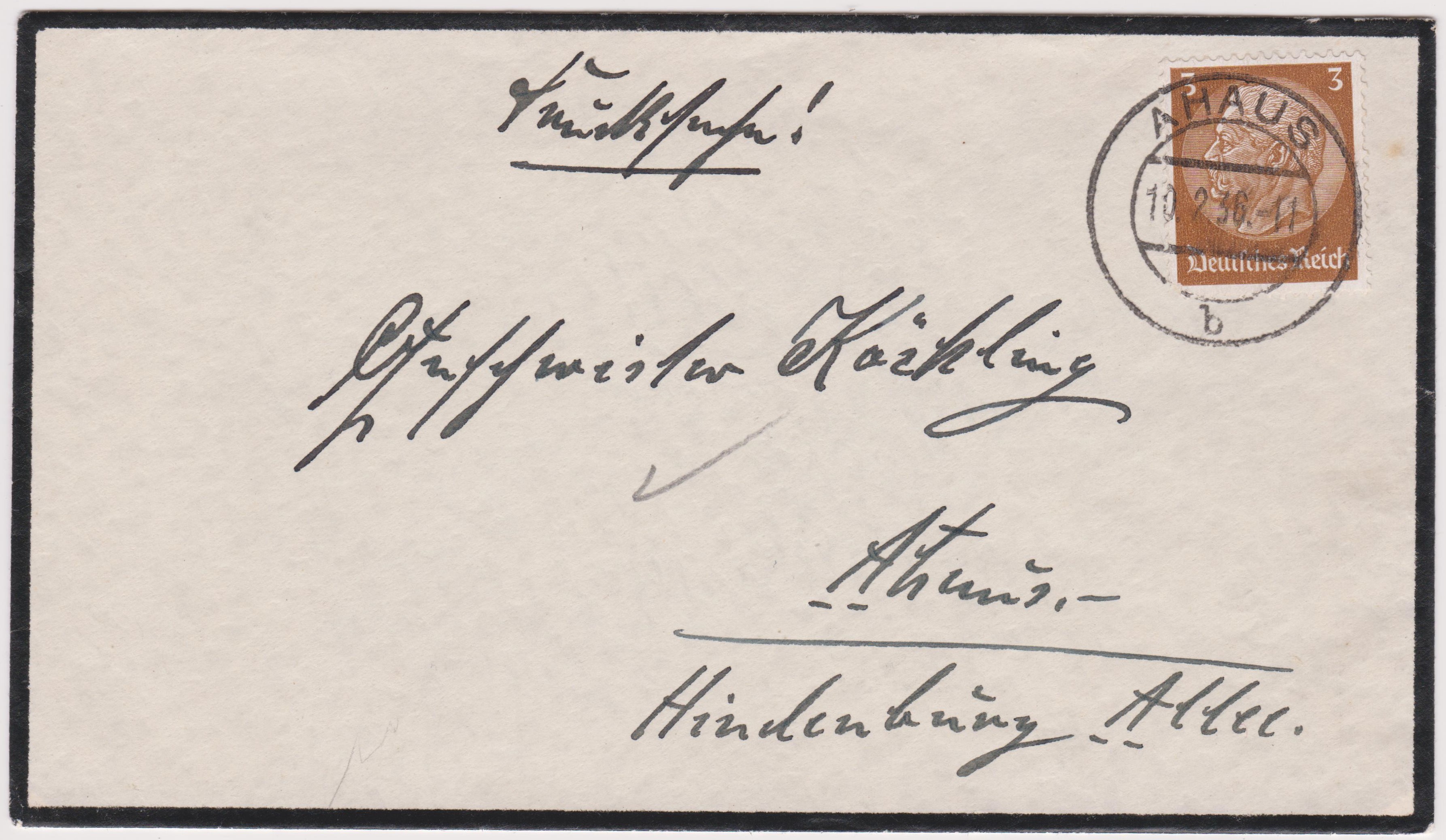 Trauerbrief, Portostufe 12 Pf, aufgegeben am 05.12.1940 in BERLIN S W 11 dargestellt als Einzelfrankatur der Dauerserie Hindenburg Medallion: