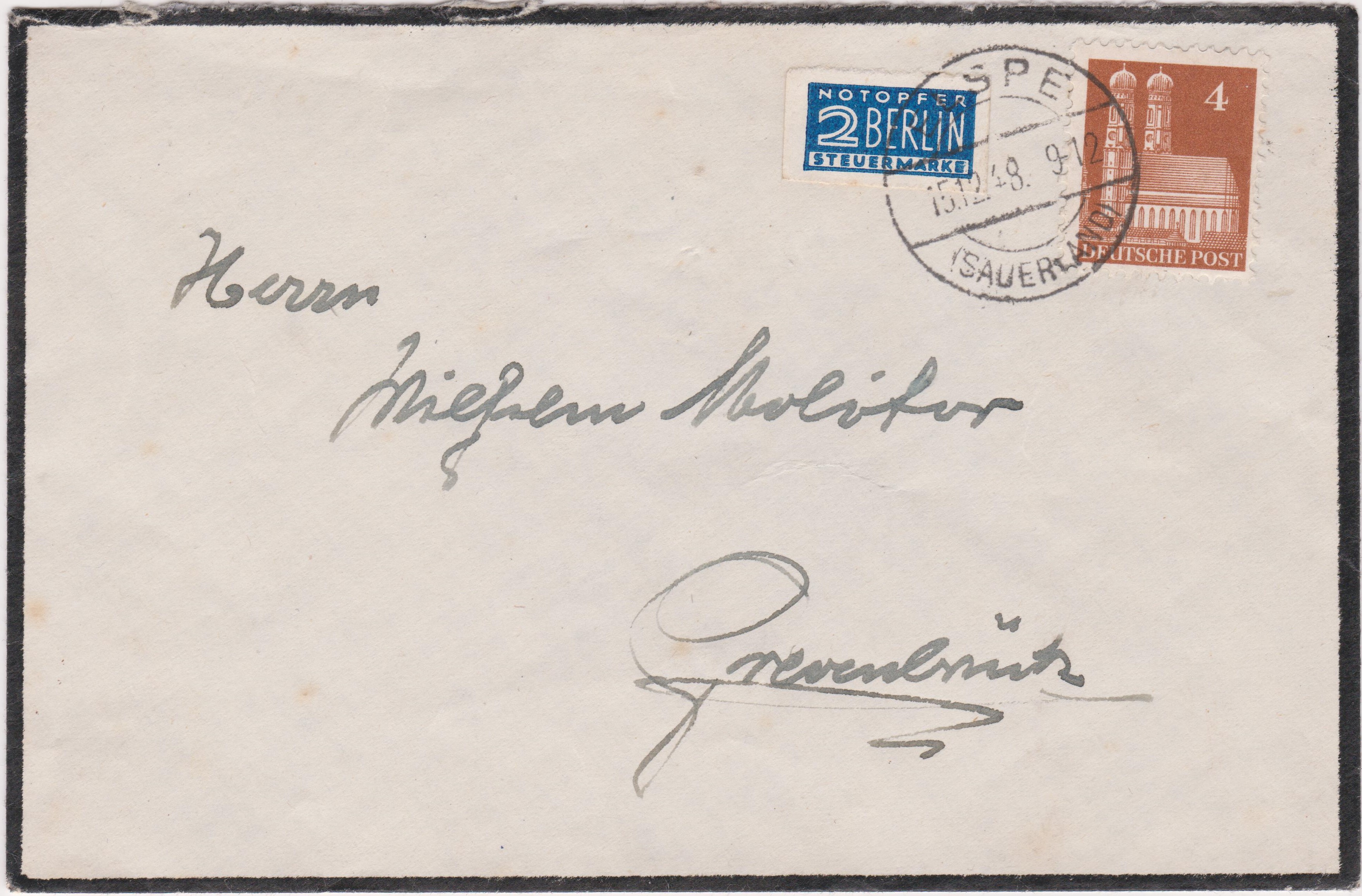 Trauerbrief nach Basel in der Schweiz, aufgegeben am 17.08.1960 in BERN: