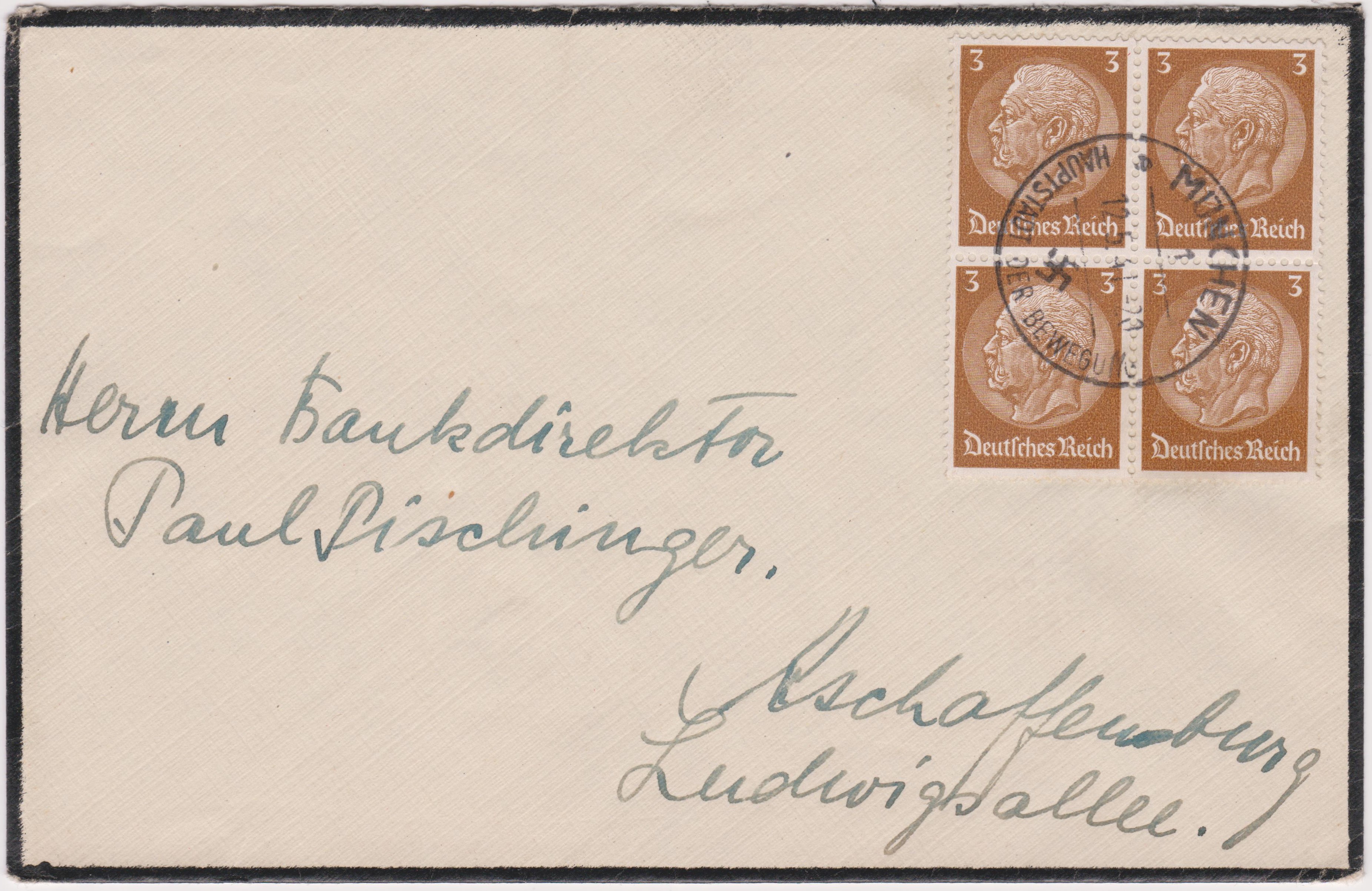 Postkarte der Dauerserie Hindenburg mit Trauerrand mit eingedrucktem Postwertzeichen zu 6 Pf, dem Porto für eine Postkarte im Fernverkehr, gebraucht am 21.01.1935 in OBERMÖRLEN über BAD NAUHEIM: