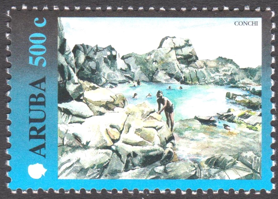 Aruba MiNr. 261 erschien am 05.06.200 im Rahmen eines Satzes "Freimarken: Landschaften" , 500 C, und zeigt Conchi: