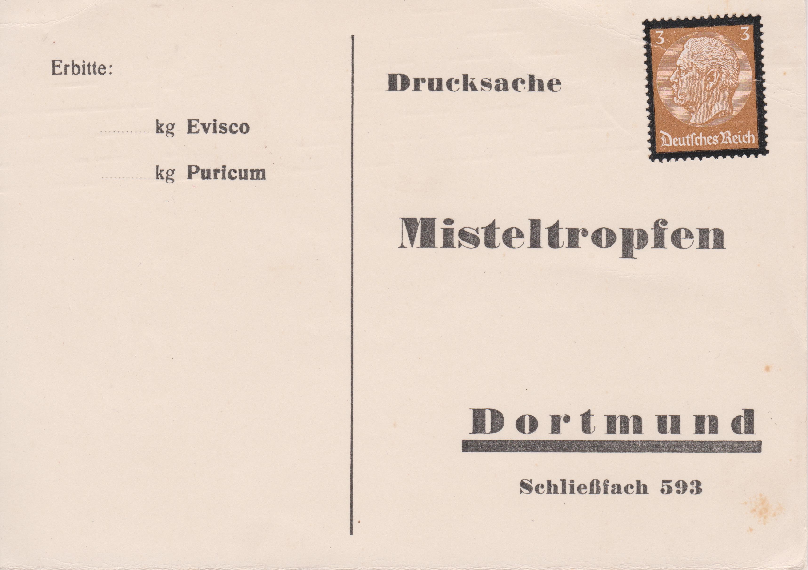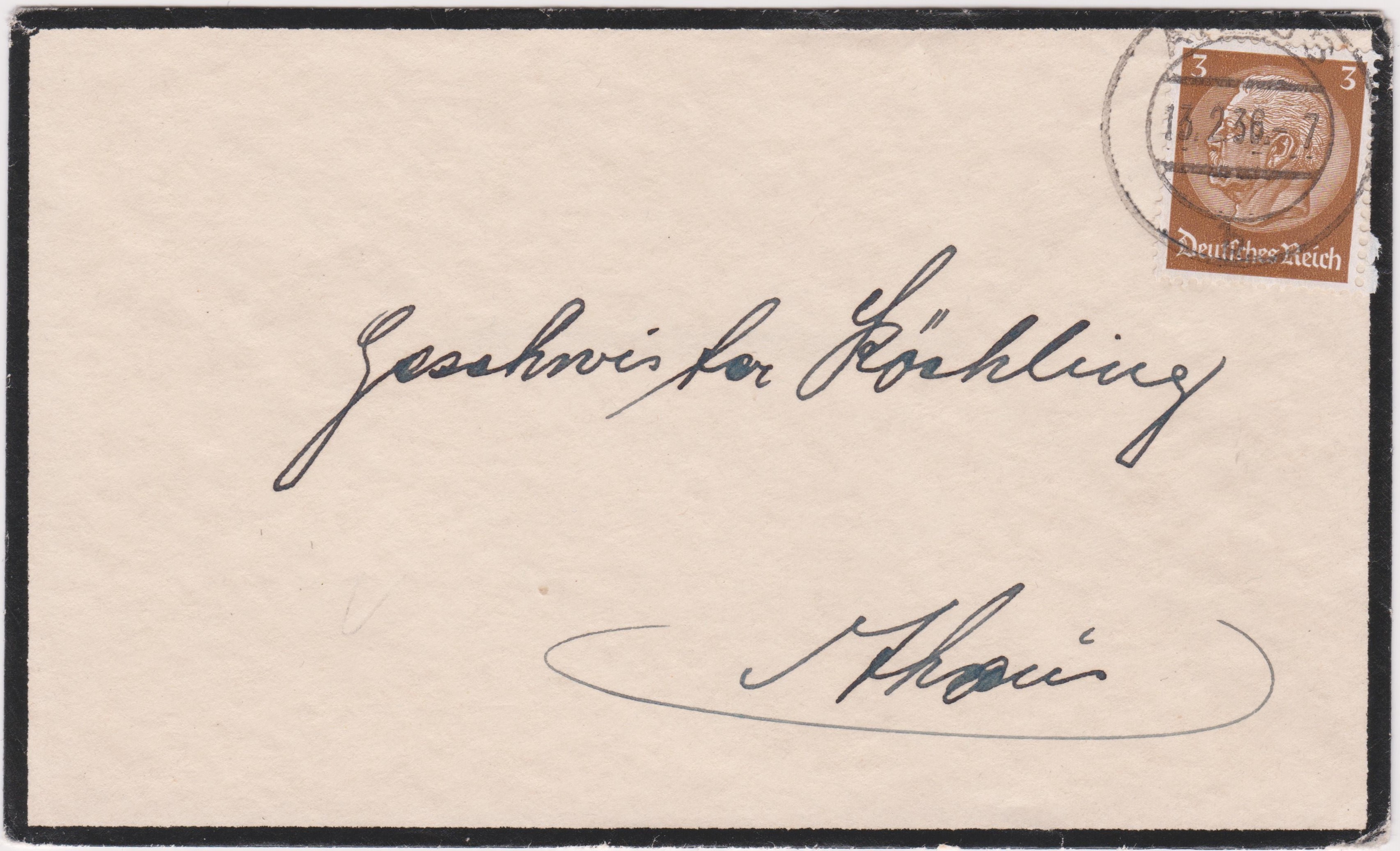 Trauerdrucksache, Portostufe 3 Pf, gelaufen im Ortsverkehr von AHAUS, freigemacht per Einzelfrankatur mit 3 Pf Dauerserie Hindenburg, entwertet am 13.02.1936 per Tagesstempel AHAUS b: