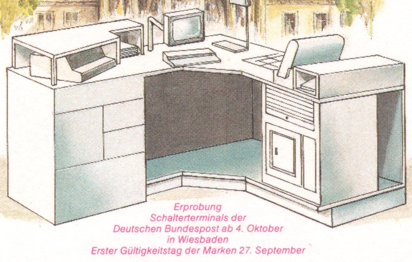 Im Rahmen von "EPOS I" (= Einsatz der Datenverarbeitung am Postschalter im Betriebsversuch 1982/1984) kam am 27.09.1982 im Postamt 6200 WIESBADEN 1 erstmals ein Schalterwertzeichendrucker zum Einsatz.