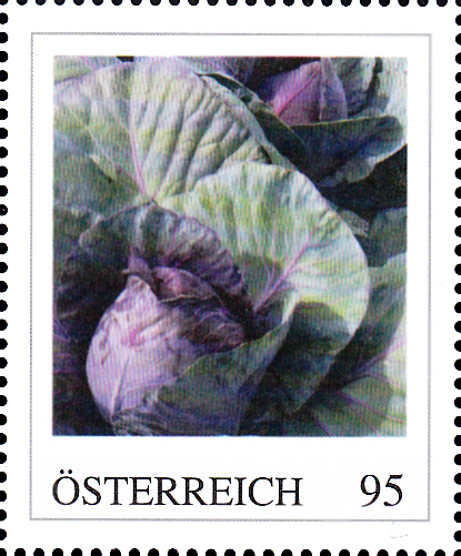 Dieses Postwertzeichen aus Österreich bildet einen Rotkohlkopf ab.