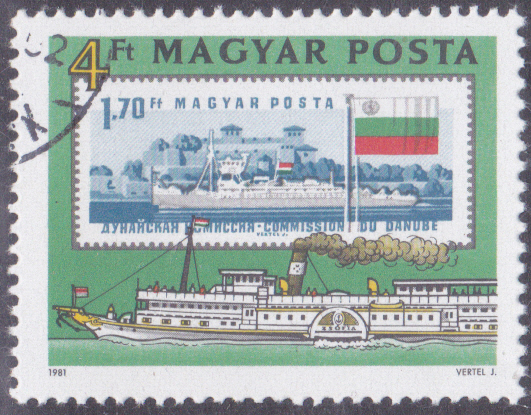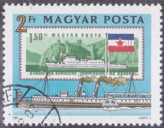 Aus dieser Serie kann ich noch eine weitere Marke (MiNr 3518 A) mit der Marke MiNr 2327 (mit dem Schubschiff "Miskolc") und dem Raddampfer "Zsófia" aus dem Jahre 1914 zeigen.