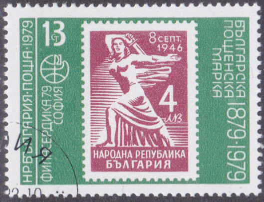 In Bulgarien erschien 1978 diese Marke (MiNr 2735) zur Internationalen Briefmarkenausstellung PHILASERDICA ’79 zum Jubiläum "100 Jahre bulgarische Briefmarken" mit der Marke Bulgarien MiNr 48.