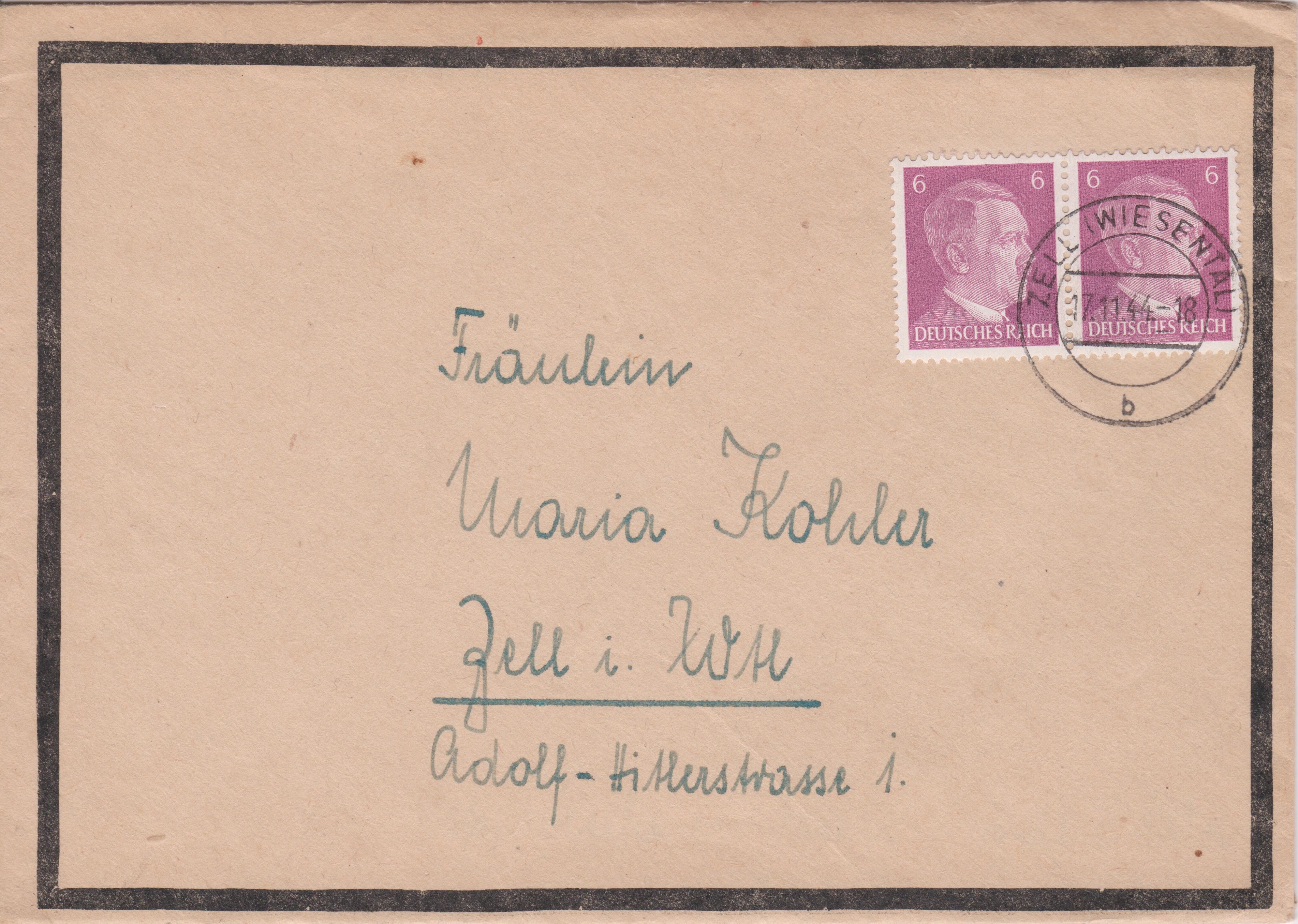 Die Entwertung erfolgte am 17.11.1944 per Tagesstempel ZELL (WIESENTAL).