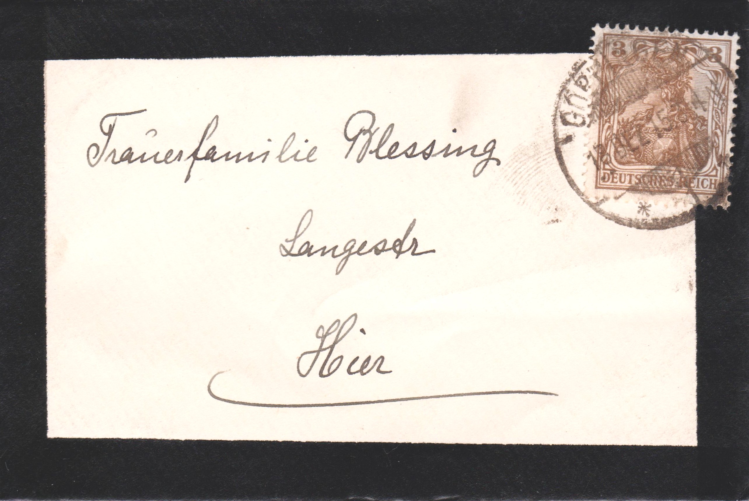 Trauerbrief, freigemacht mit 3 Pf Dauerserie Germania, gelaufen am 13.12.1915 im Ortsverkehr von GÖPPINGEN: