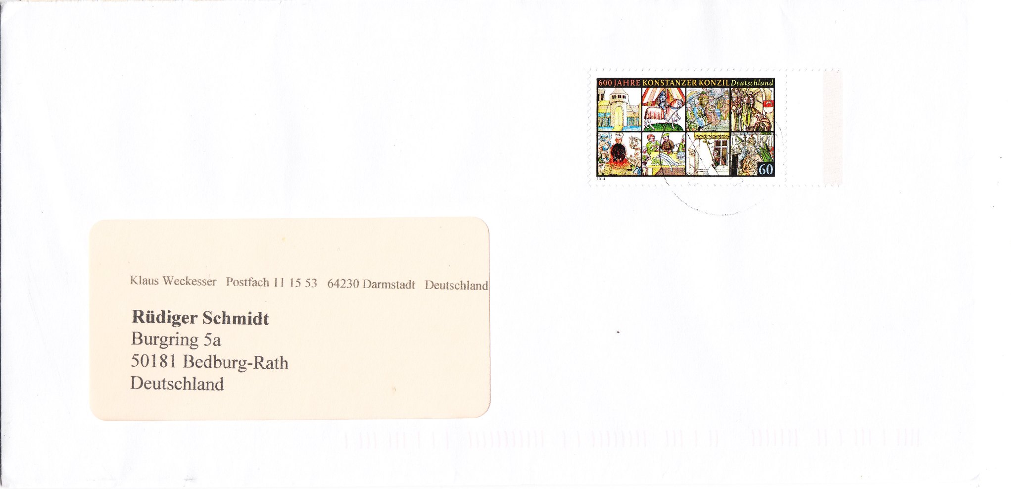 Hier die Wertstufe 15 Pfennig, MiNr. 2383, am 01.11.1988 als Mehrfachfrankatur portorichtig auf einer Drucksache von 21 bis 50g ins "Ausland" = in die BRD: