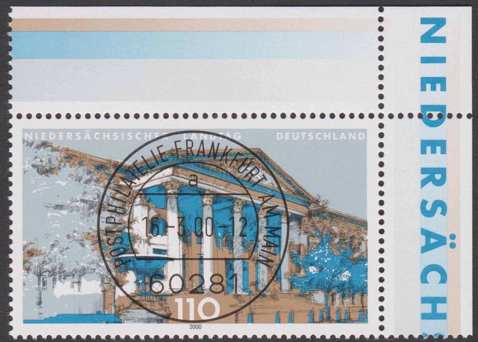 Niedersächsischer Landtag, Bund MiNr. 2104, rechte obere Bogenecke mit EST POSTPHILATTELIE FRANKFURT AM MAIN: