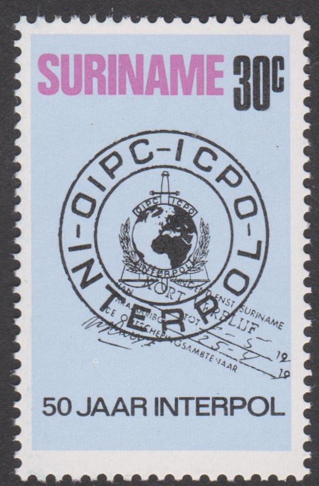 Surinam MiNr. 656-657, erschienen am 07.11.1973 aus Anlaß "50 Jahre Interpol":