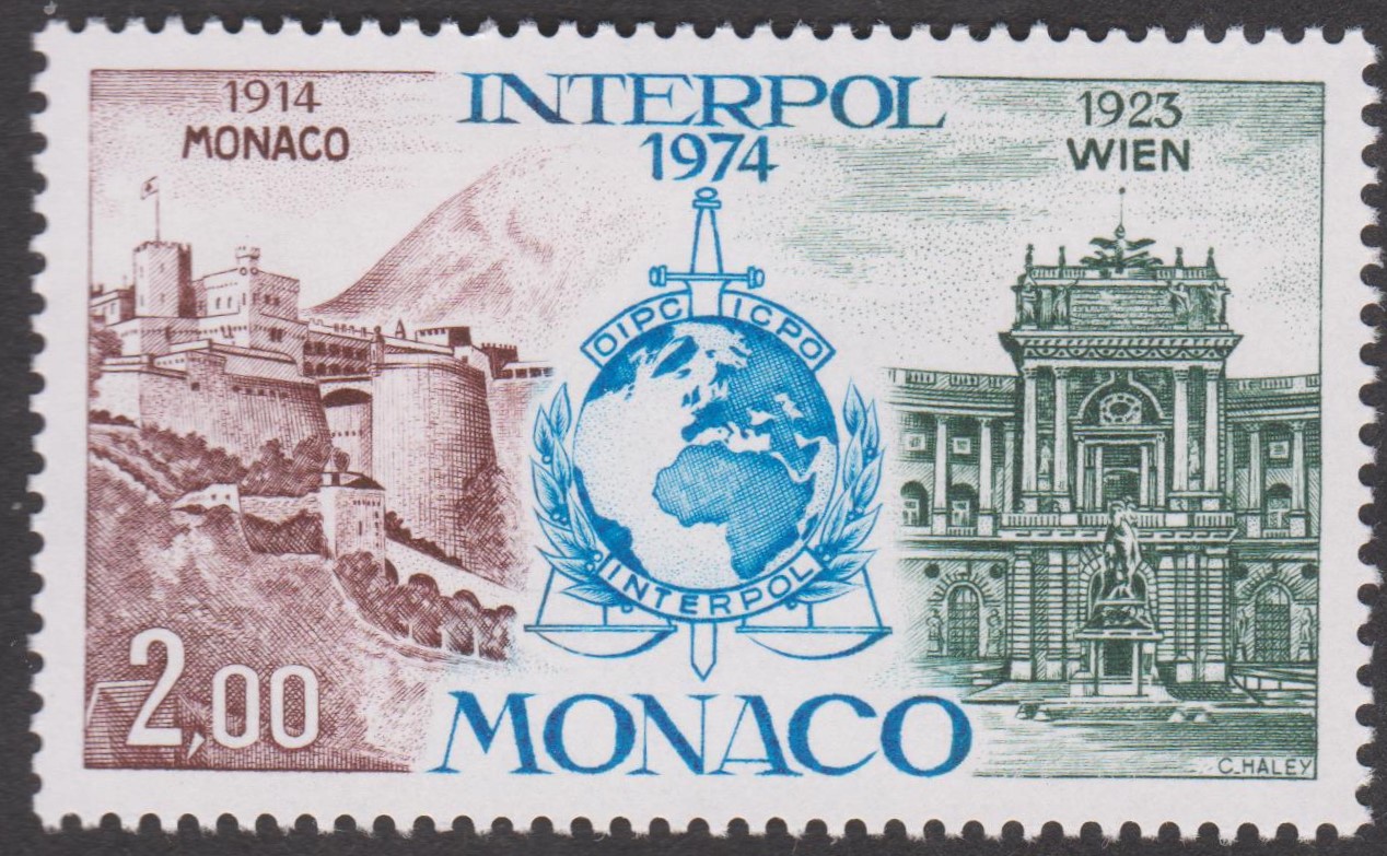 Monaco MiNr. 1123 erschien am 08.05.1974 aus Anlaß "60. Jahrestag der geplanten Gründung von Interpol in Monaco":