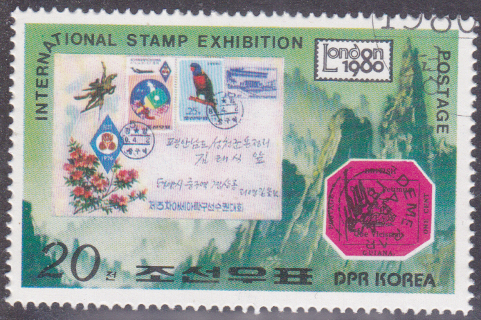 Die zweite Marke dieser Serie (MiNr 1992) bildet die Marke Britisch Guyana MiNr. 9 (diese Marke gibt es nur noch einmal!) und einen Brief mit Marken aus Nord-Korea ab.