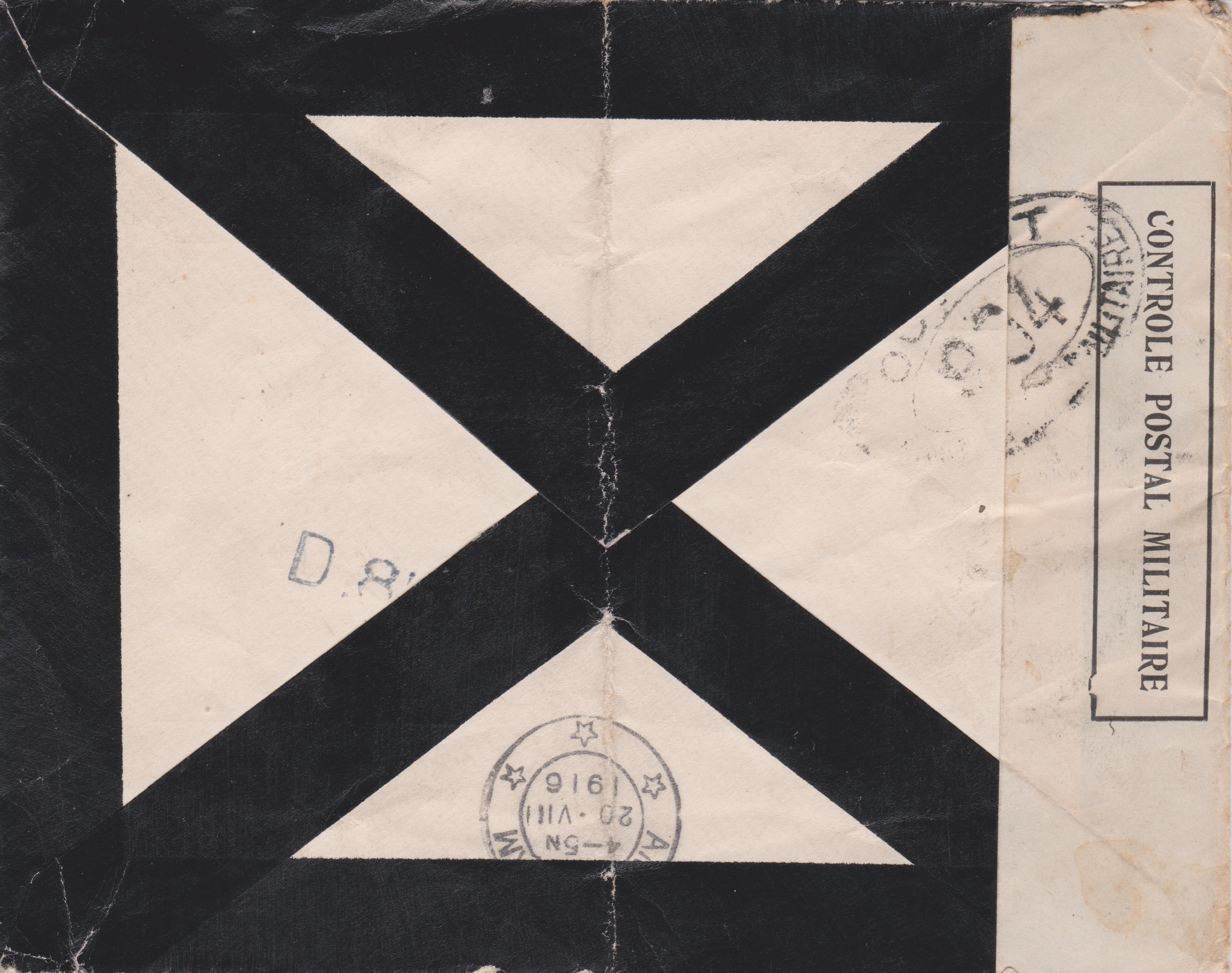 Der Brief durchlief die französische Zensurstelle in London, die die Prüfstempel "Ziffern im Oval" mit dem Nummernkreis 901 bis 925 benutzte. In diesem Fall wurden die Stempel mit den Nummern "901" sowie "904" abgeschlagen.