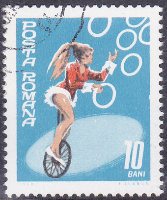 Auch in Rumänien ist eine Serie mit Motiven zum Thema "Zirkus" erschienen. Hier zeige ich die Marke zu 10 Bani (MiNr 2790) mit einer Jongleuse auf einem Einrad.
