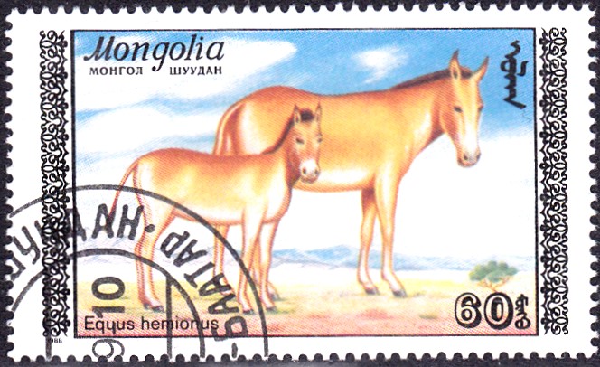 Mongolei MiNr. 1997 zeigt zwei Mongolische Halbesel oder Dschiggetai (Equus hemionus hemionus):
