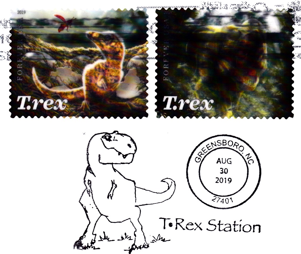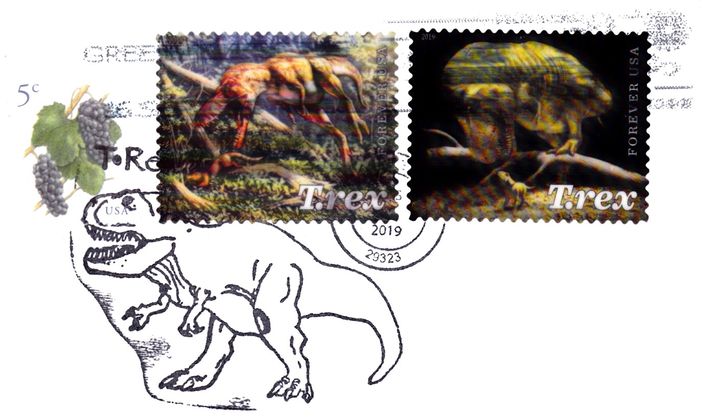 Am 29.08.2019 erschienen in den USA vier Postwertzeichen mit Abbildungen zum Thema Saurier.