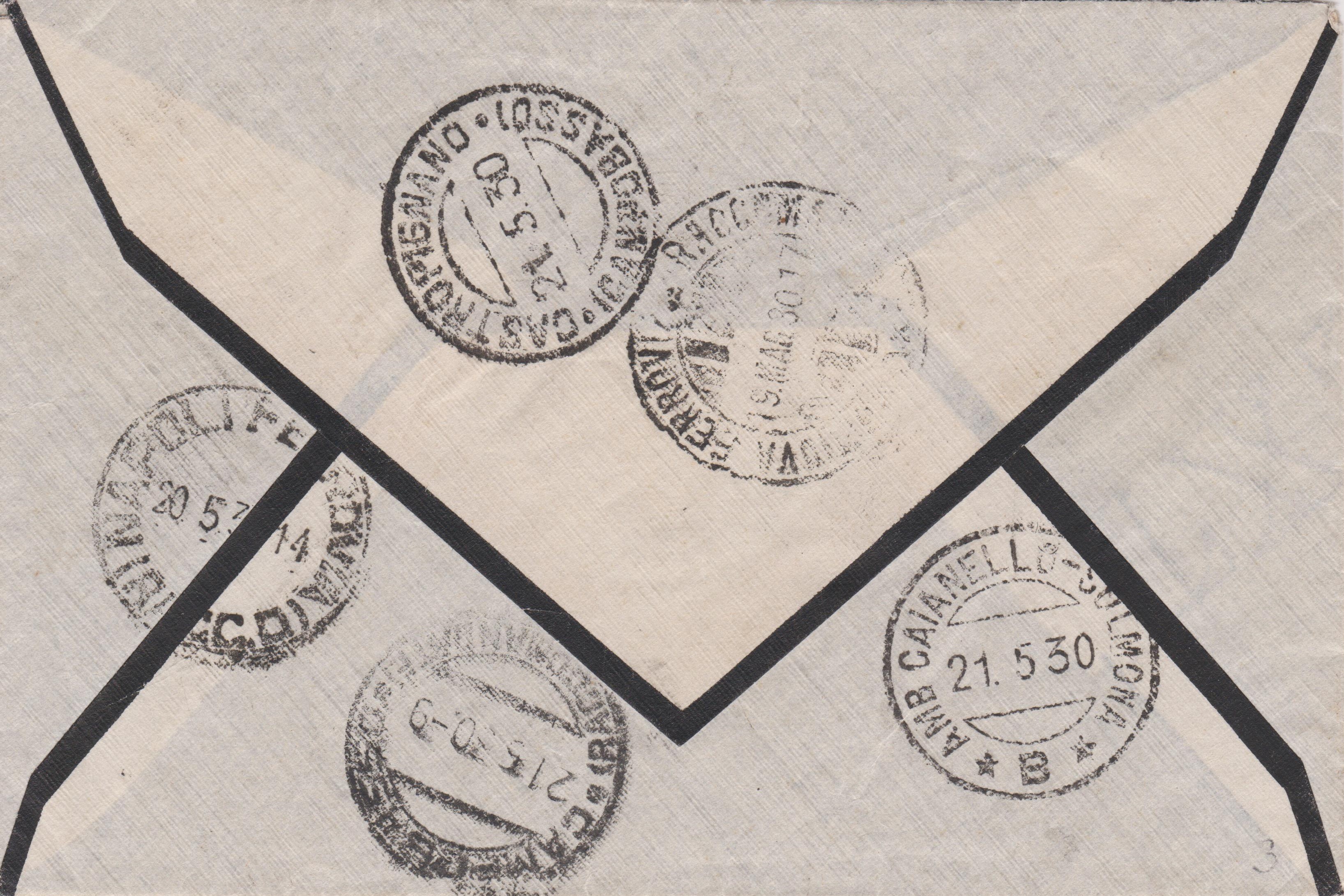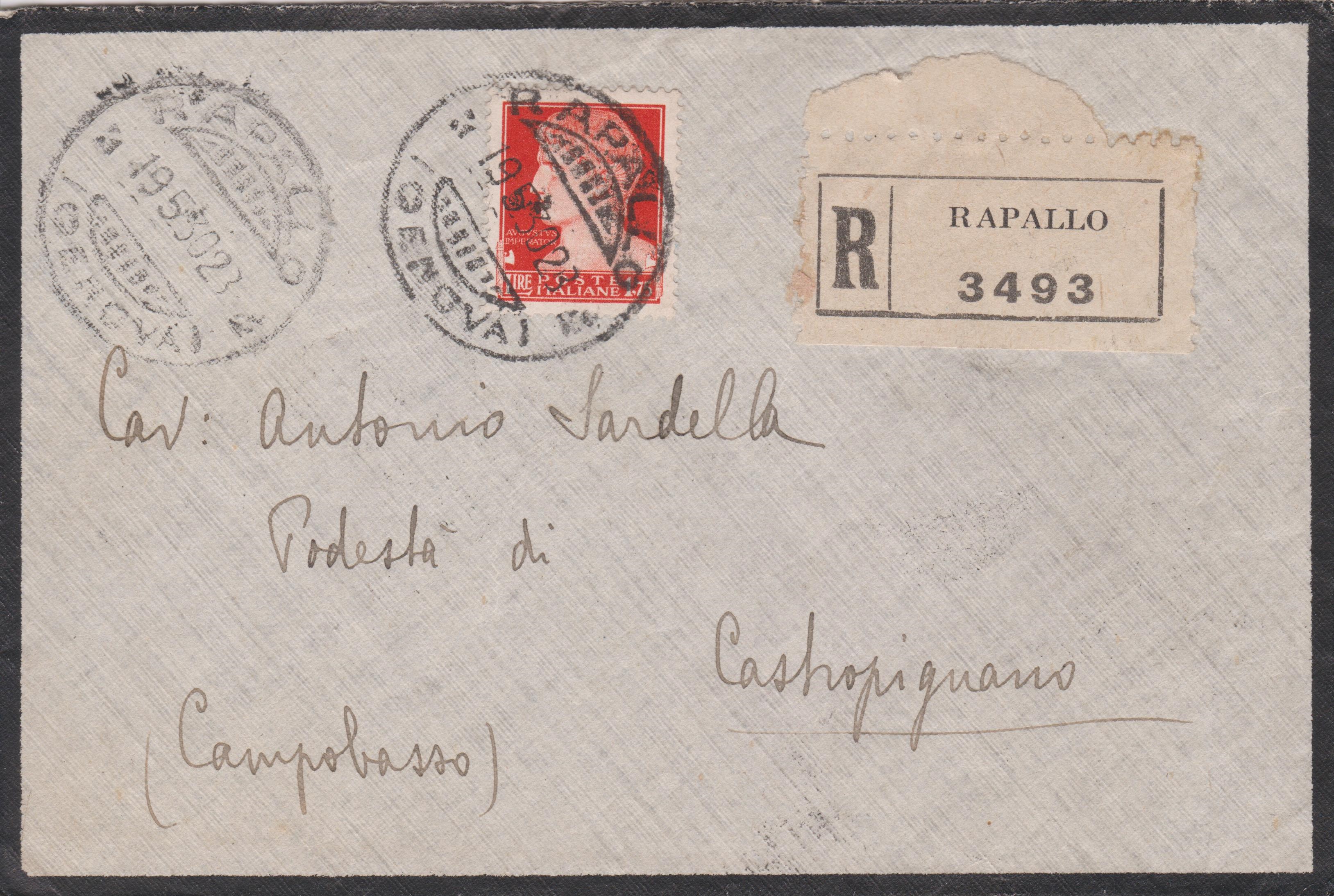Trauerbrief aus Italien, per Einschreiben aufgegeben am 19.05.1930 in RAPALLO (GENOVA), adressiert nach "Castropignano":