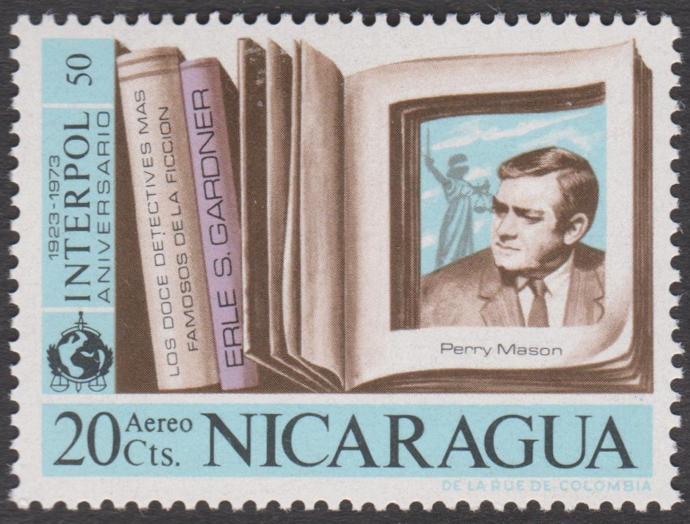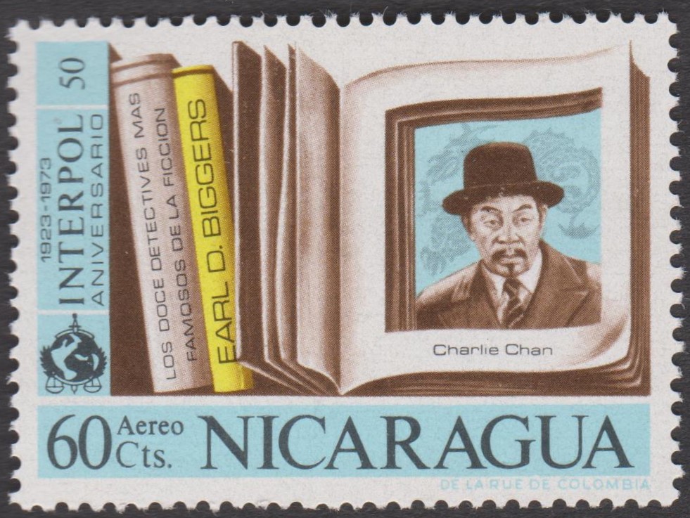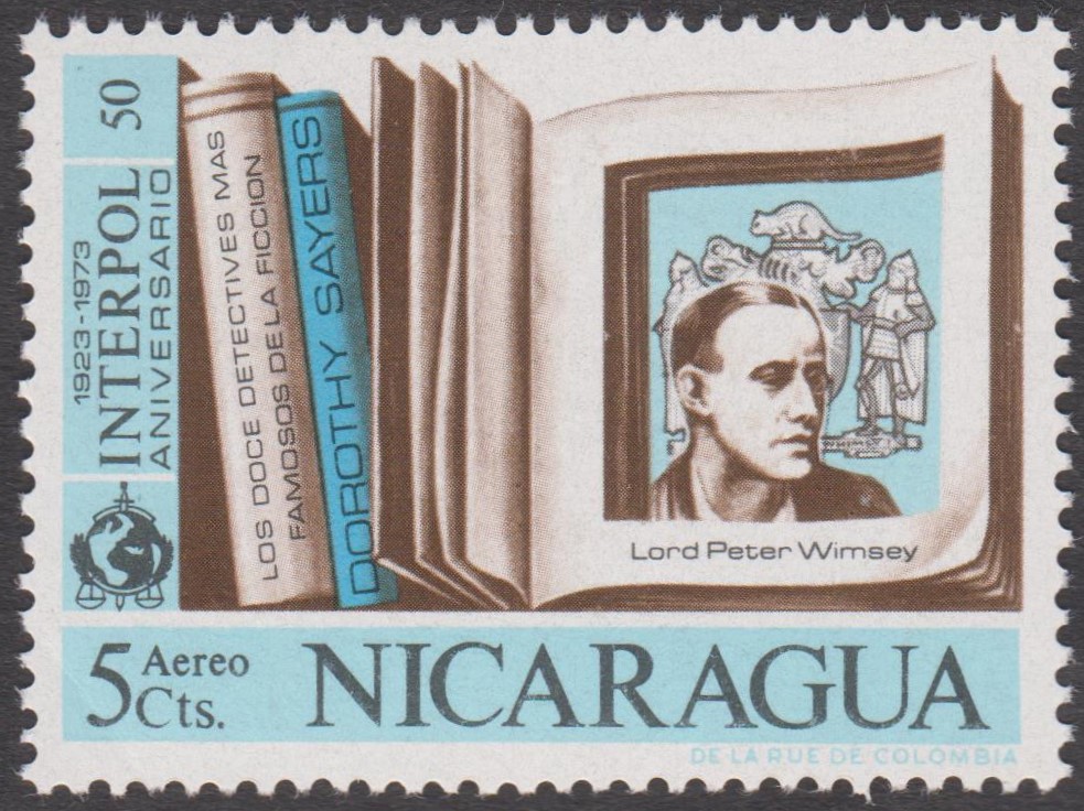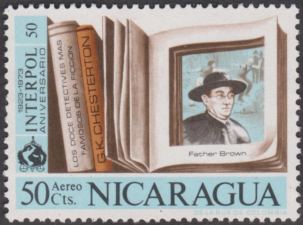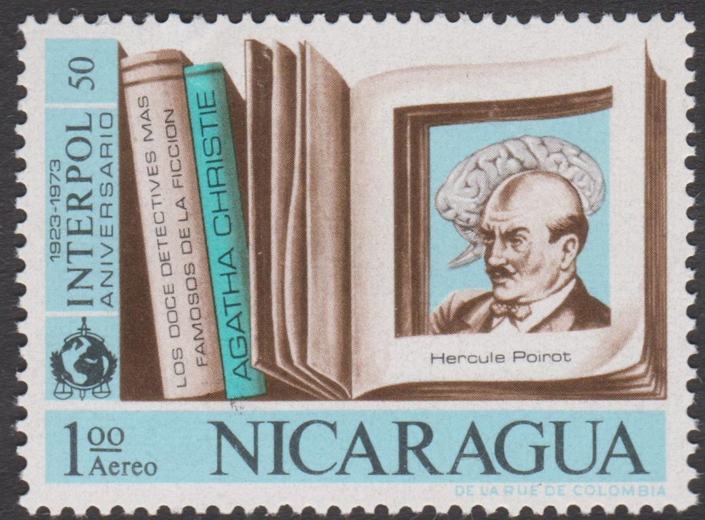 Dieses Postwertzeichen aus Nicaragua würdigt Kommissar Maigret im Rahmen eines Satzes zum Thema Interpol: