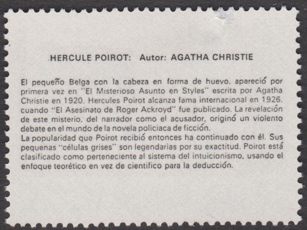 Dieses Postwertzeichen aus Nicaragua würdigt Hercule Poirot im Rahmen eines Satzes zum Thema Interpol: