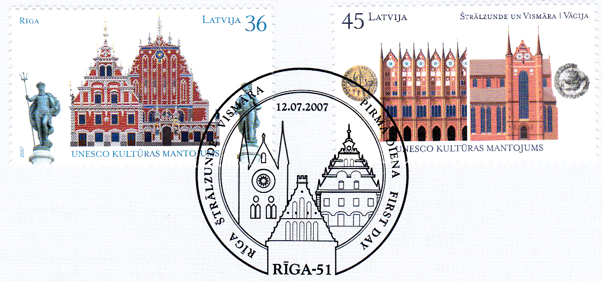 Und diese beiden Marken aus Lettland erhielten den Ersttagsonderstempel aus Riga.