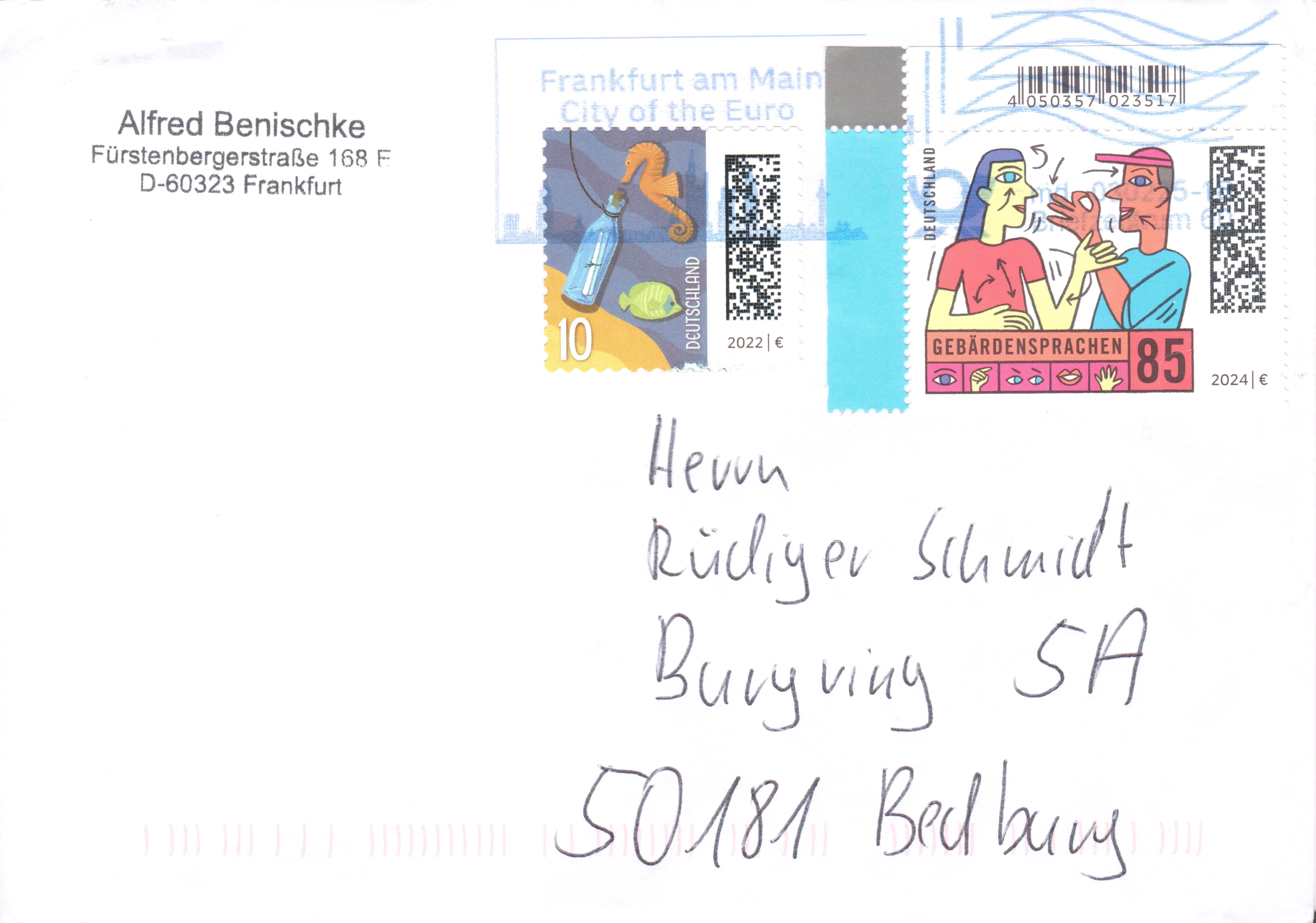 Bei der Deutschen Post erschien 2024 ein Postwertzeichen zum Thema "Gebärdensprache", MiNr. 3819.