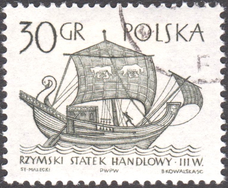 Polen MiNr. 1565 zeigt ein römisches Handelsschiff aus dem 3. Jahrhundert nach einer Malerei aus Ostia: