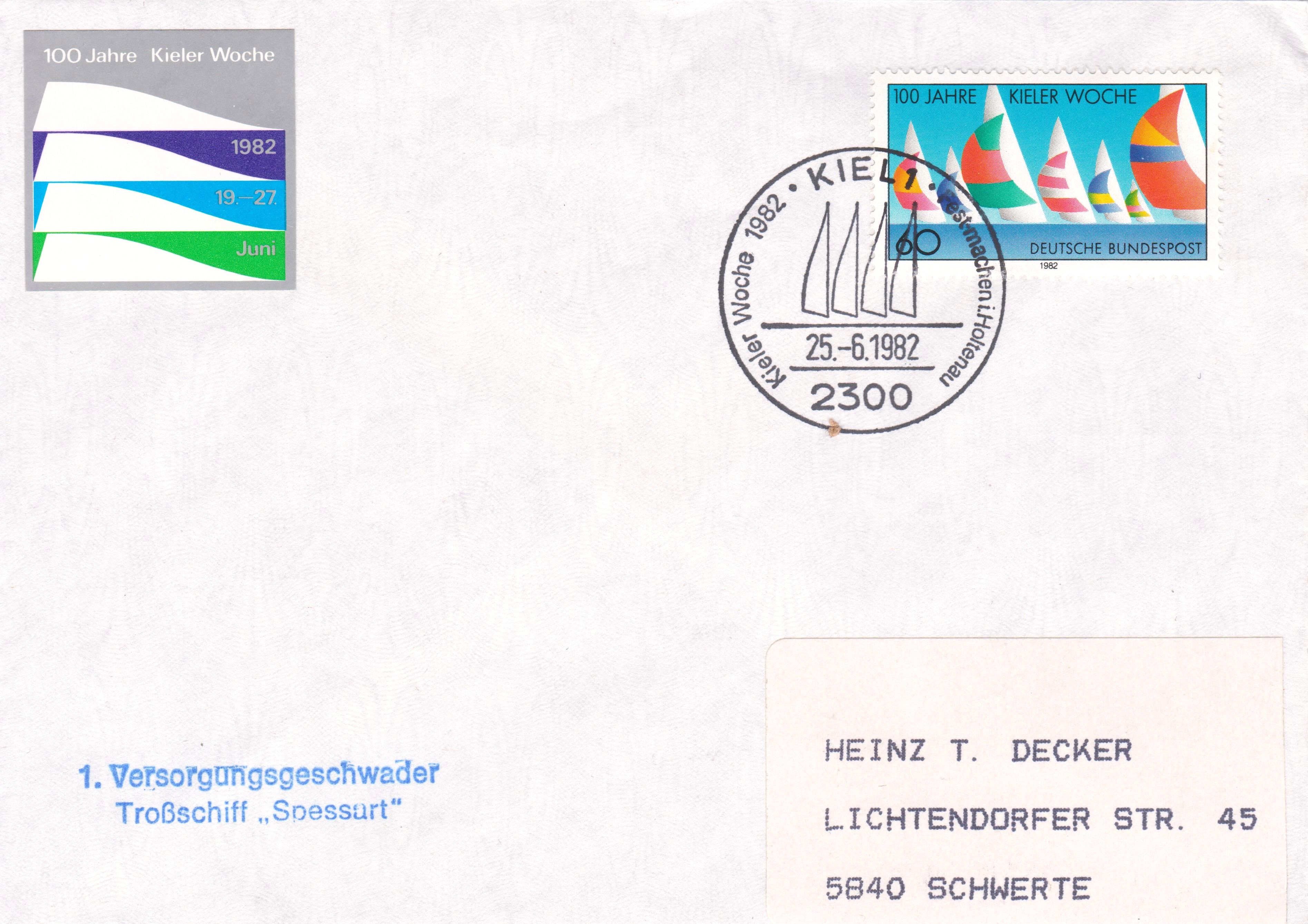 Das Troßschiff "Spessart" vom 1. Versorgungsgeschwader nahm am 25.06.1982 an der Kieler Woche teil, was dieser Beleg dokumentiert: