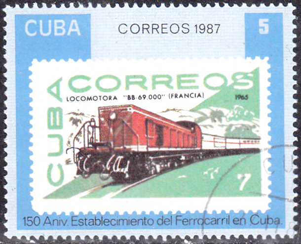 Auf einer weiteren Marke der gleichen Serie (MiNr 3144 A) sehen wir die Marke Kuba MiNr 2085, die eine Lokomotive "La Junta" aus dem Jahre 1837 zeigt, ab.