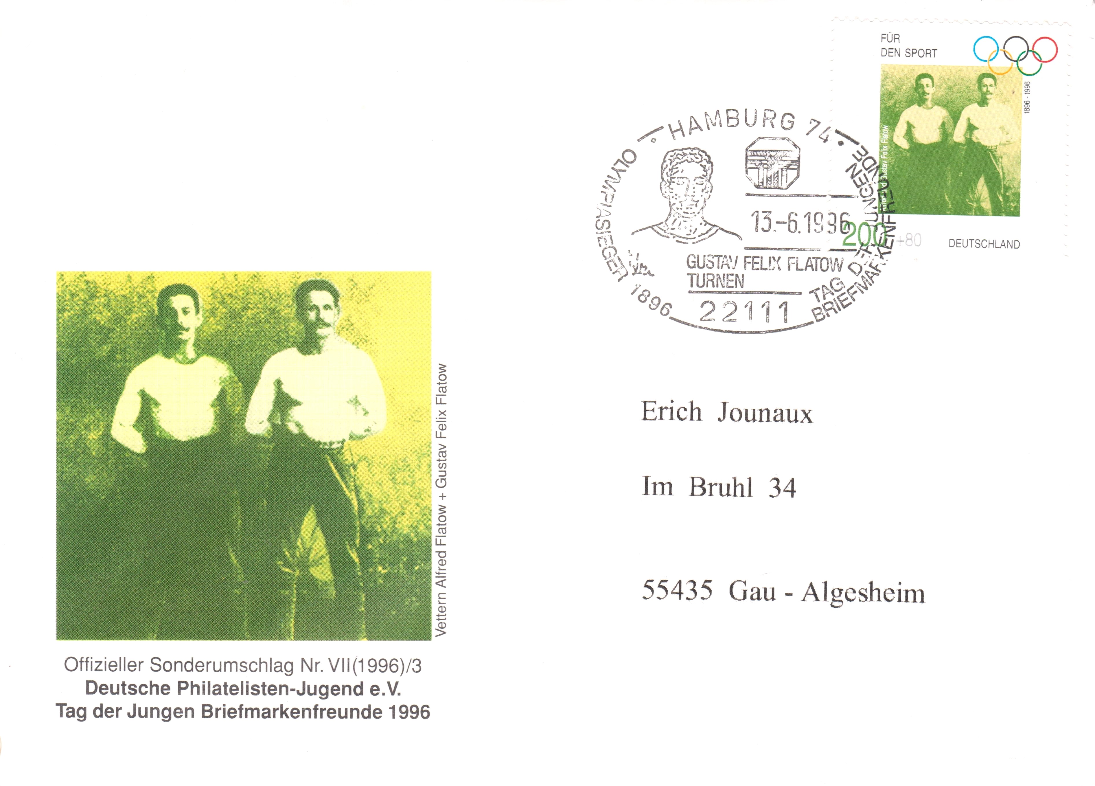 1996 erschien in der Zuschlagserie der Deutschen Bundespost zu den Olympischen Spiele 1996 mit Olympiasiegern ein Wert mit Alfred und Gustav Felix Flatow.