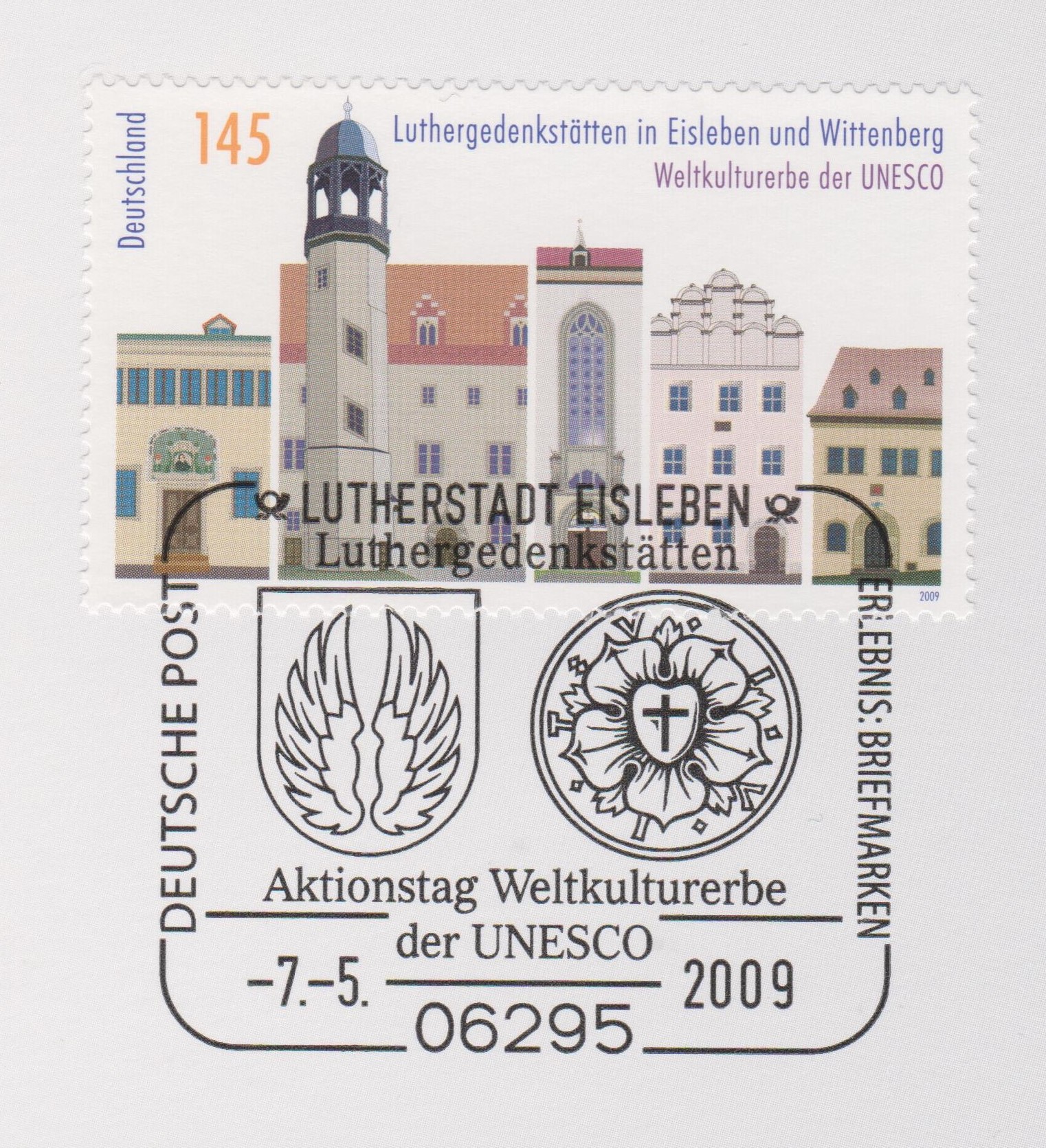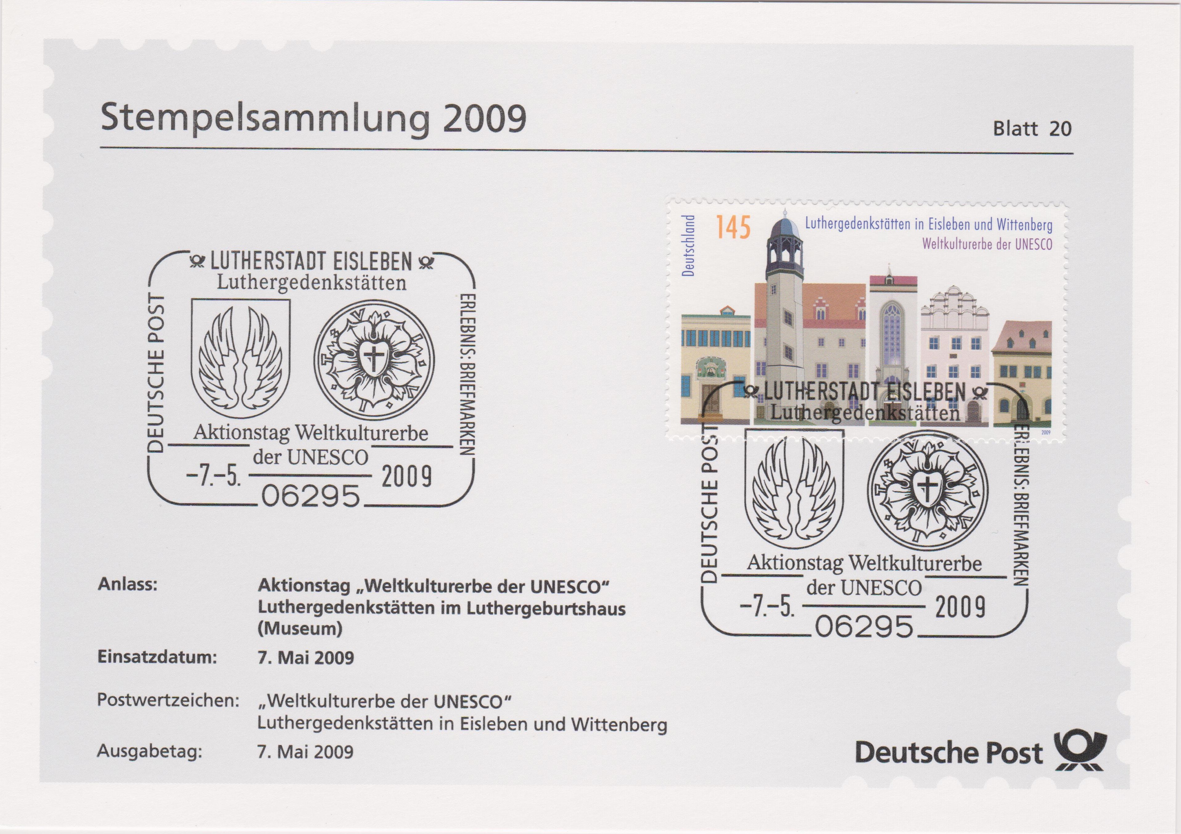 Der "Aktionstag Weltkulturerbe der UNESCO" ist das Thema dieses "Blatt 20" der "Deutsche Post Stempelsammlung 2009":