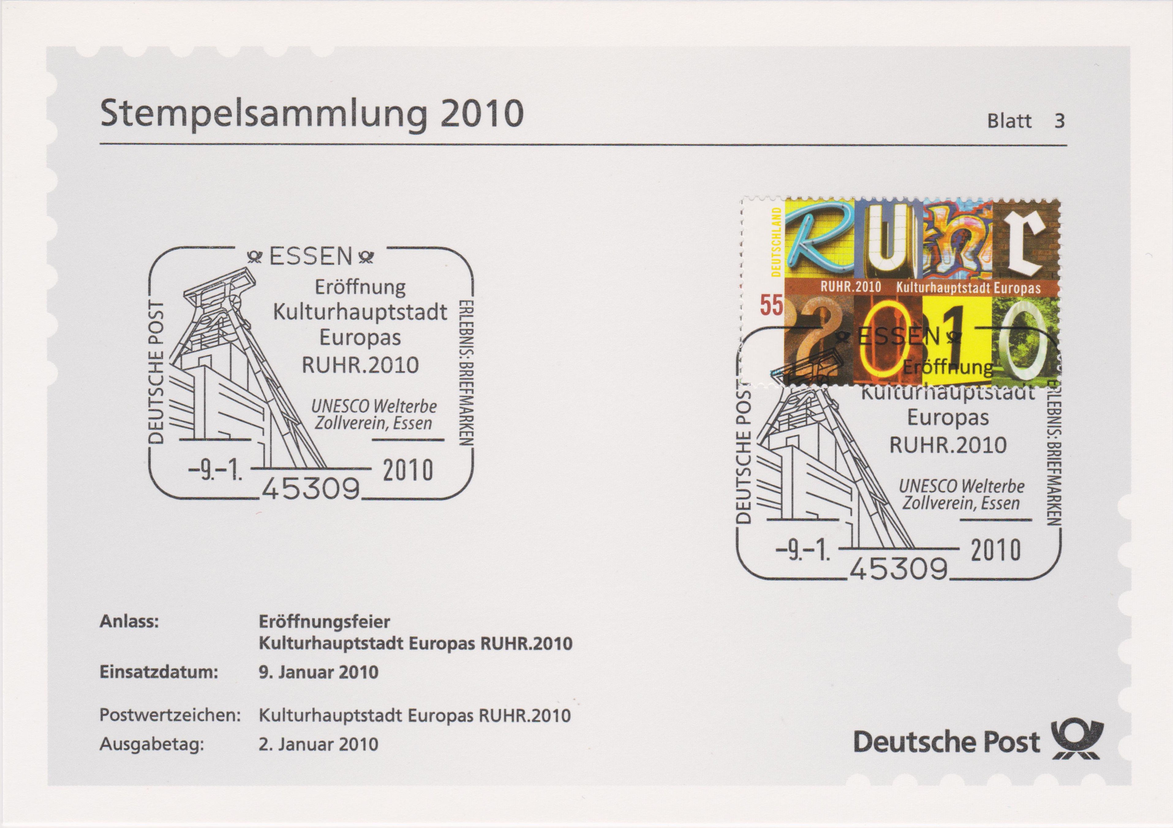 Blatt 3 der Deutsche Post Stempelsammlung 2010 zeigt einen zu diesem Thema perfekt passenden Sonderstempel:
