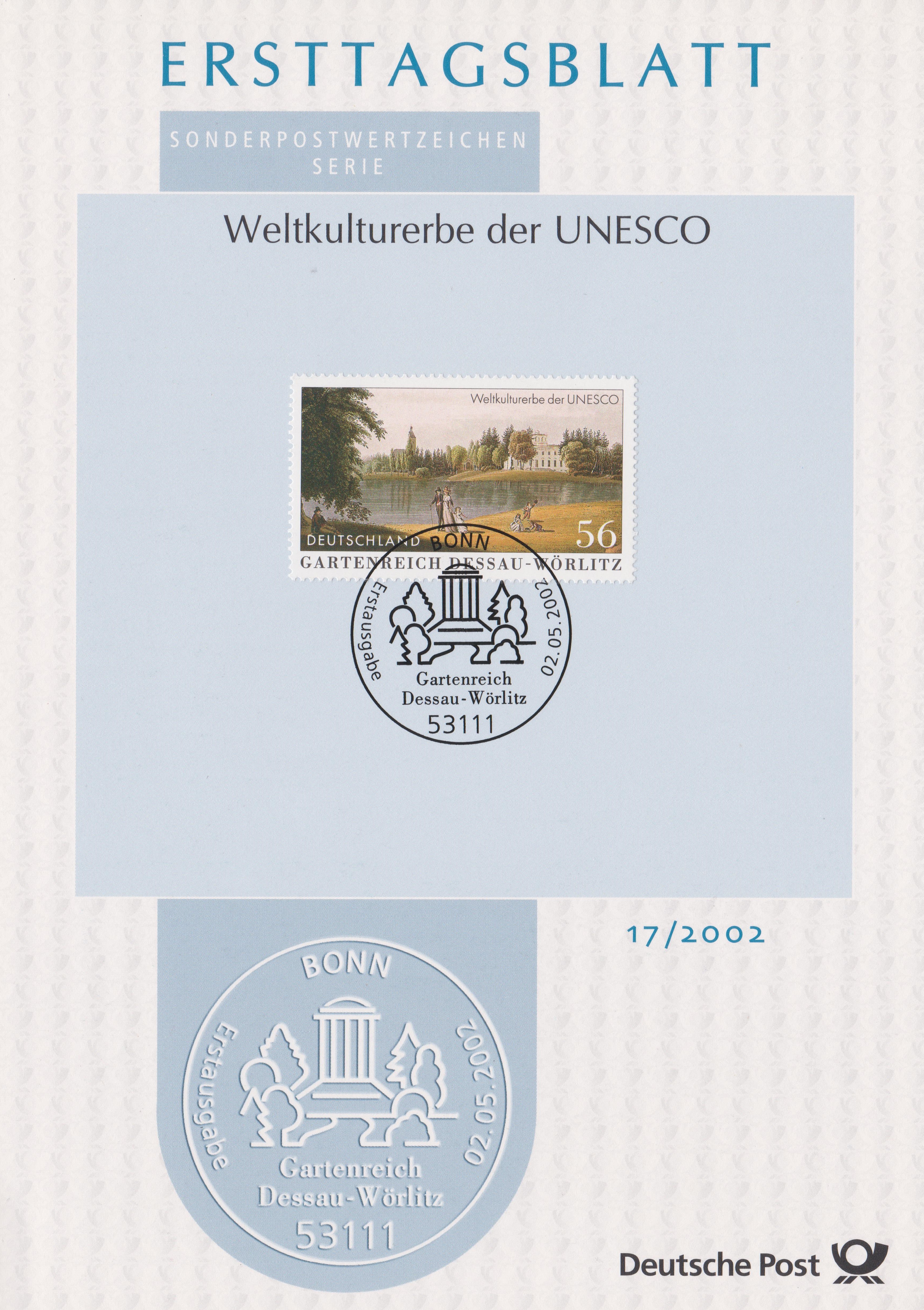 Dieses ETB 17/2002 steht ebenfalls unter dem Motto "Weltkulturerbe der UNESCO" und zeigt das Motiv "GARTENREICH DESSAU-WÖRLITZ":