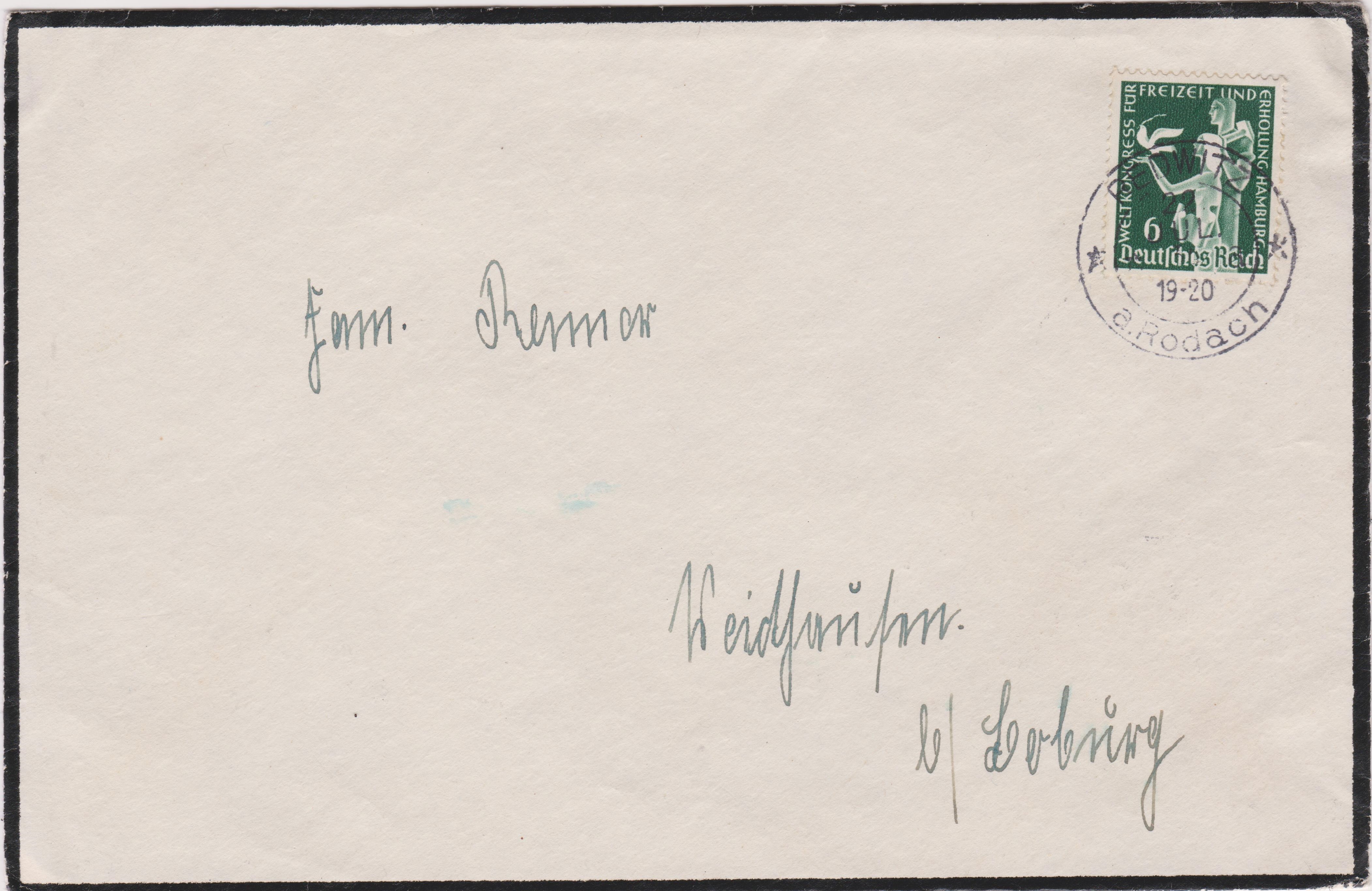 Trauerbrief, frankiert per Einzelfrankatur Deutsches Reich MiNr. 622: